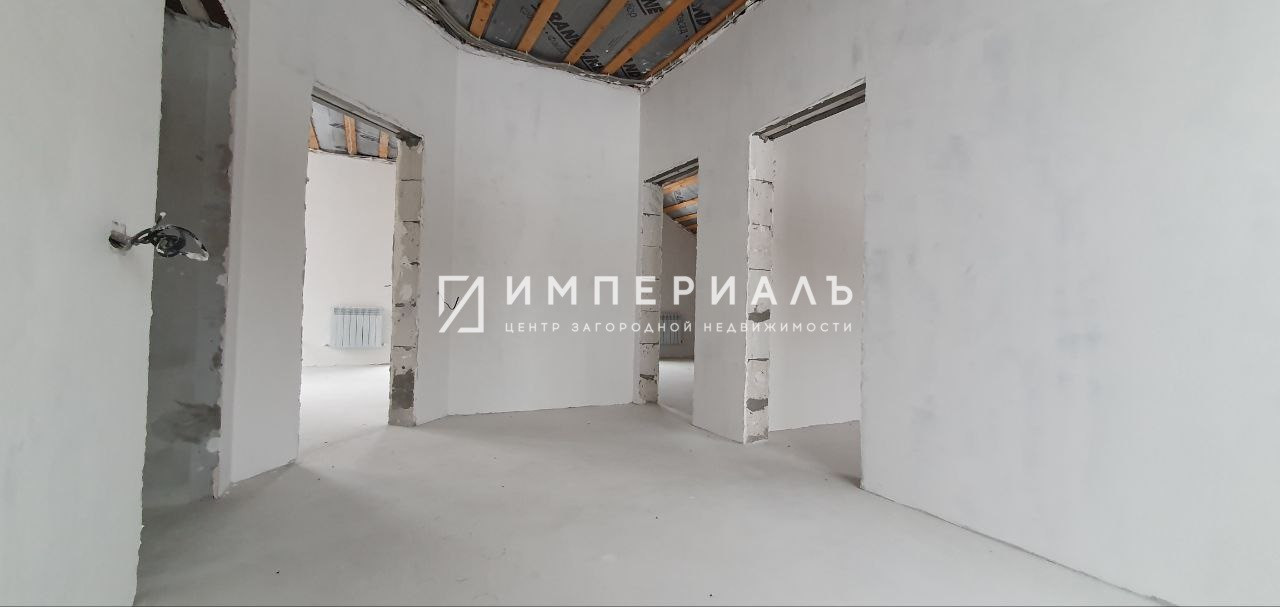Выполнена разводка сантехники, электрики (установлен внутридомовой щиток), оптоволокна под интернет. Газ заведен в дом (кухня и бойлерная), выполнена разводка отопления (радиаторы), залит антифриз. На первом этаже организован теплый пол. Проведена гидроизоляция санузлов. Установлена бетонная межэтажная лестница. Стены отштукатурены и зашпаклеваны. Внутренняя отделка White box (предчистовая).