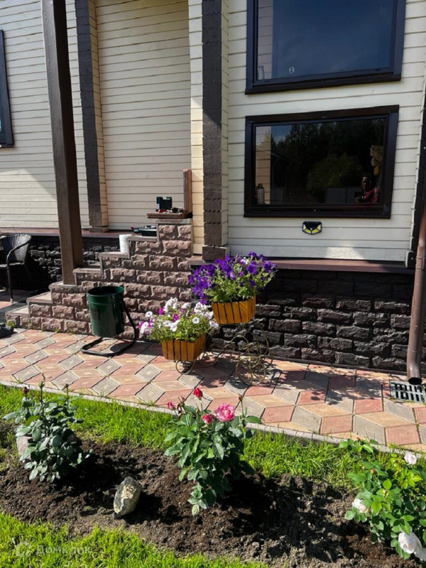 На территории расположена теплица 6*3, место для парковки на 3 авто, кирпичная мангальная зона , крытая беседка 4*3. Посажены плодово-ягодные культуры: смородина красная, чёрная, груша, яблоня, абрикос, войлочная вишня, ежевика, крыжовник, малина, голубика, клумбы с розами, азалии, родендроном. Также есть посадки с хвойными деревьями( горная сосна, кедр, пихта, туи, сербская ёлка). Посеян газон, установлен авто полив.