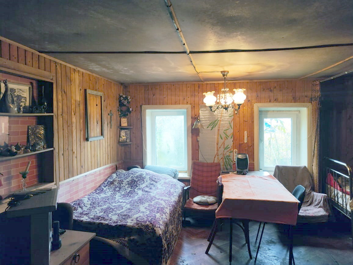 Площадь первого этажа около 100 кв.м., включая одну теплую комнату 30 кв.м, террасу, кухню и открытую веранду. На первом этаже установлена ванна и душ. На полуторном этаже есть летняя комната около 10 кв.м. Также есть возможность сделать дополнительно полноценный, утепленный мансардный этаж (с входом из теплой комнаты первого этажа) это еще плюс комната около 20 кв.м.