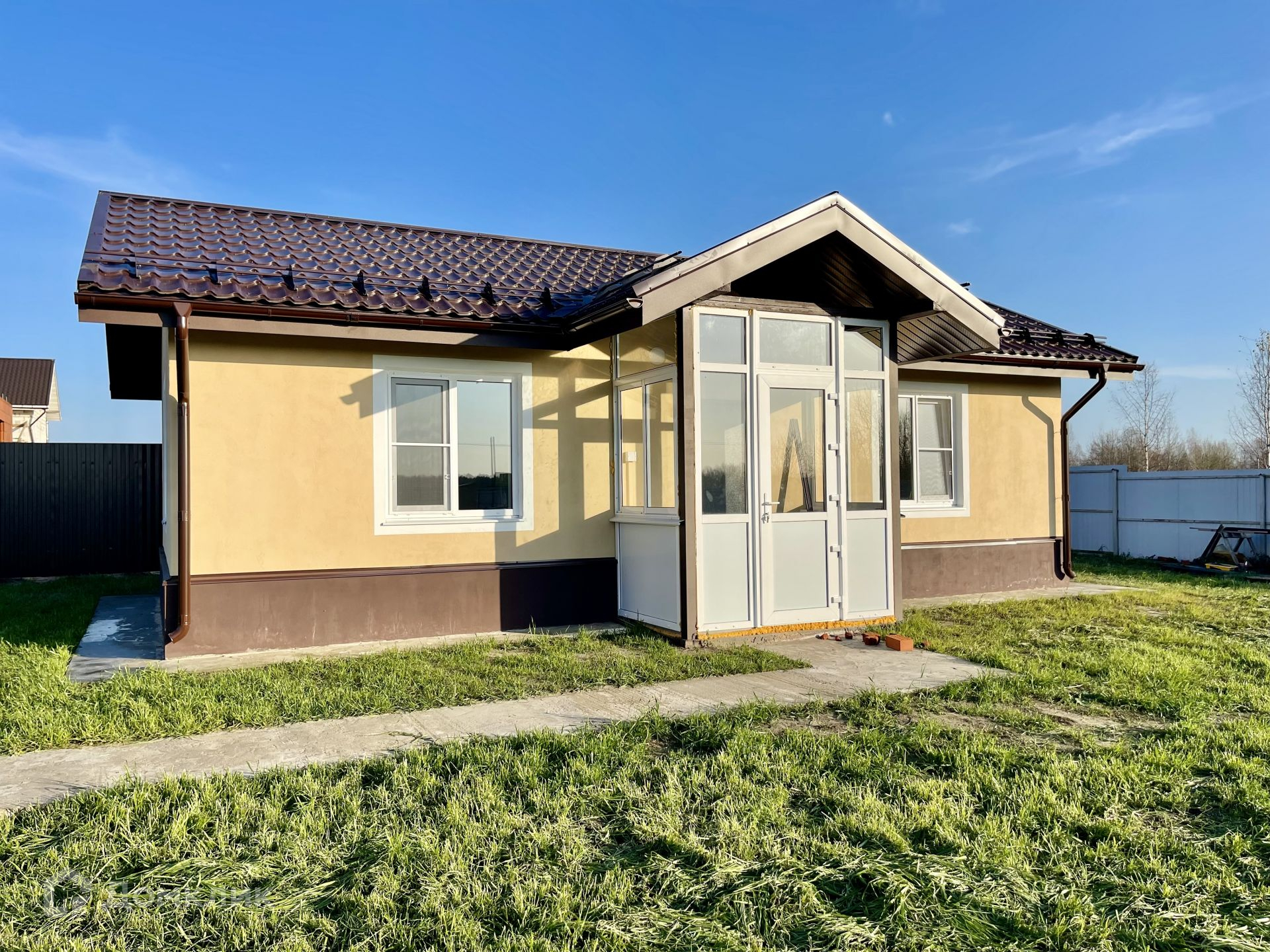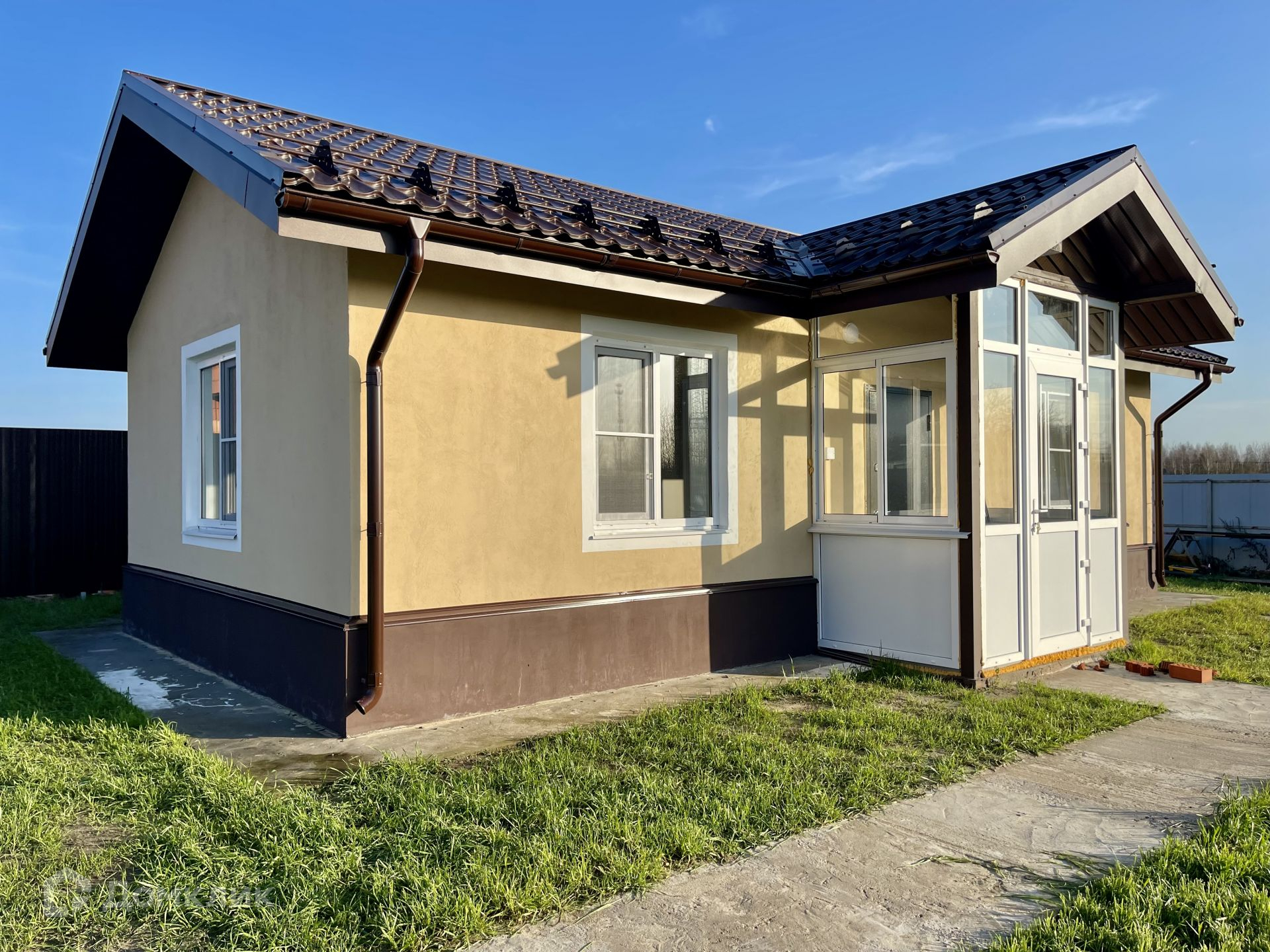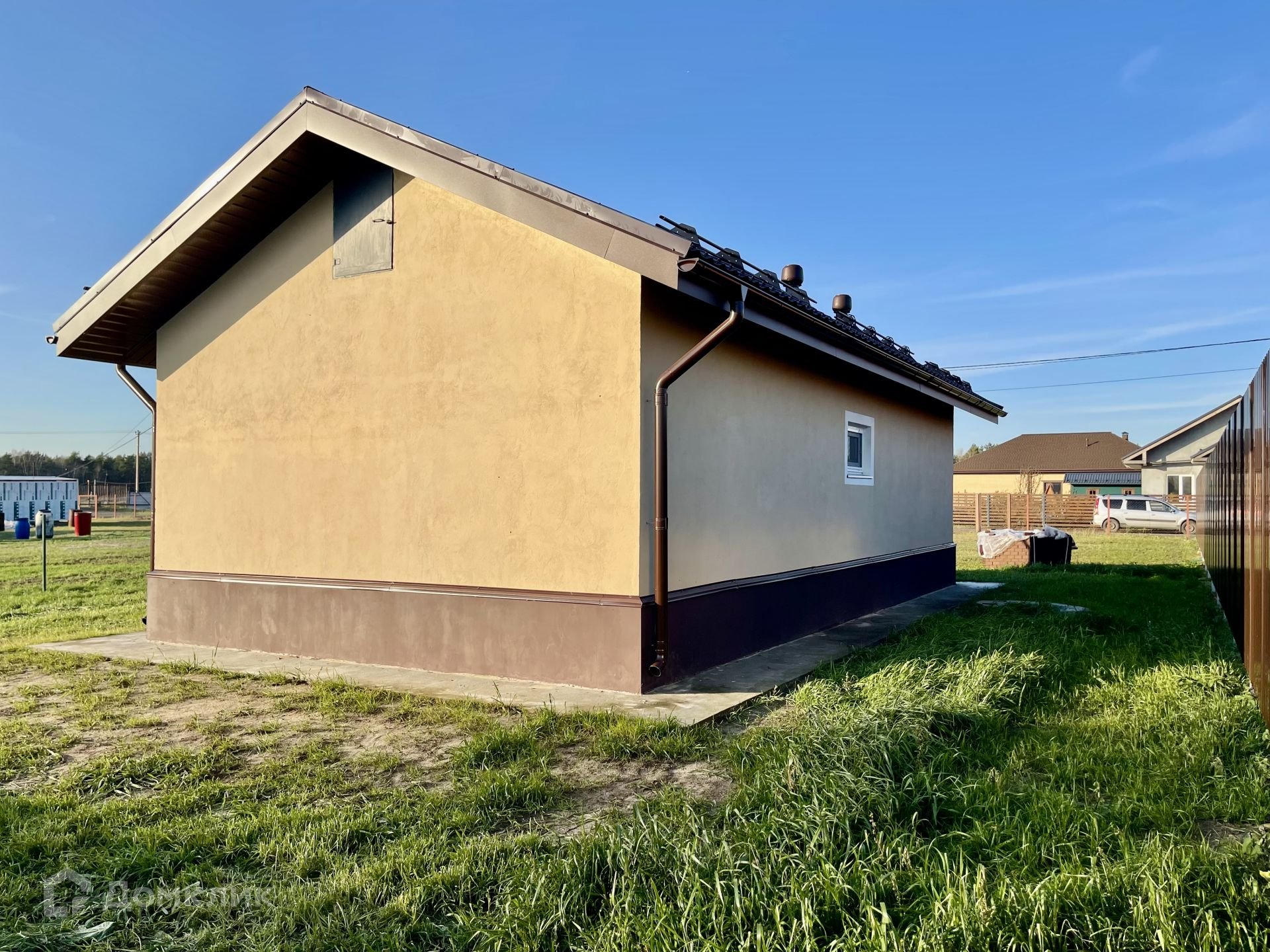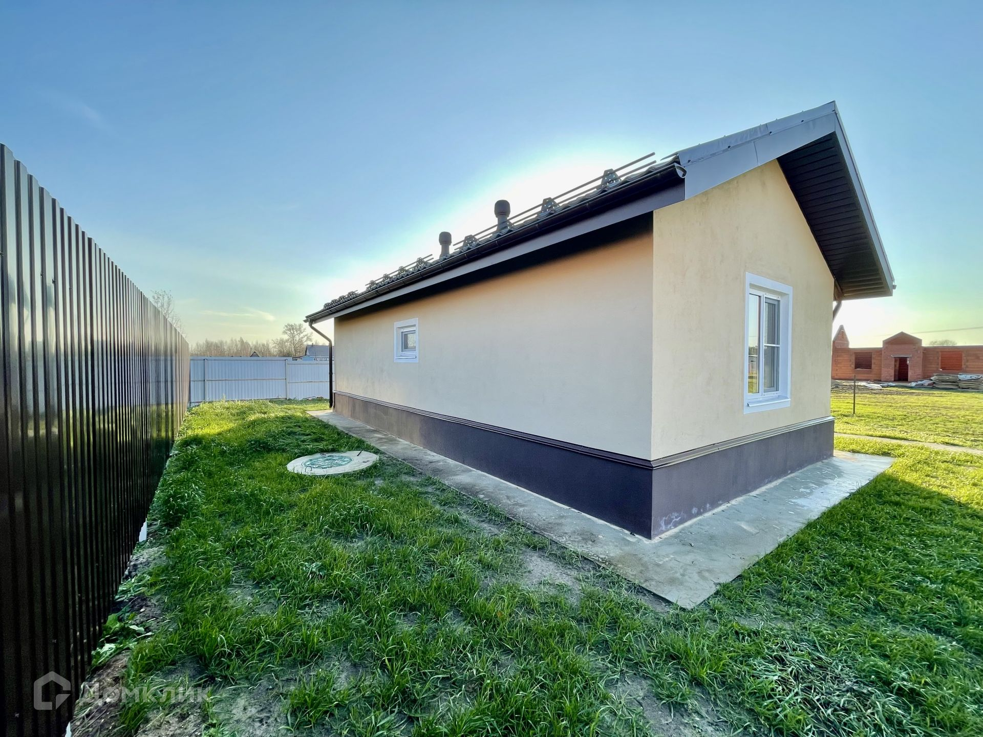 Построен в 2022 году из кирпича (теплая керамика), на ленточном фундаменте. Крыша металлочерепица, окна двухкамерные стеклопакеты. Снаружи декоративная штукатурка. Внутренняя отделка выполнена в  светлых тонах. По всей площади теплые водяные полы.