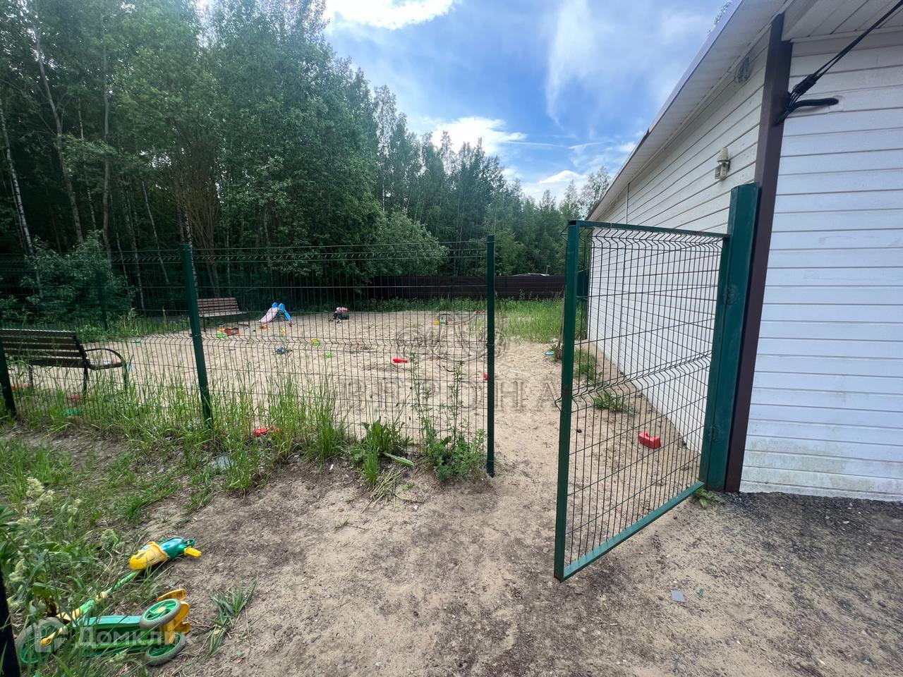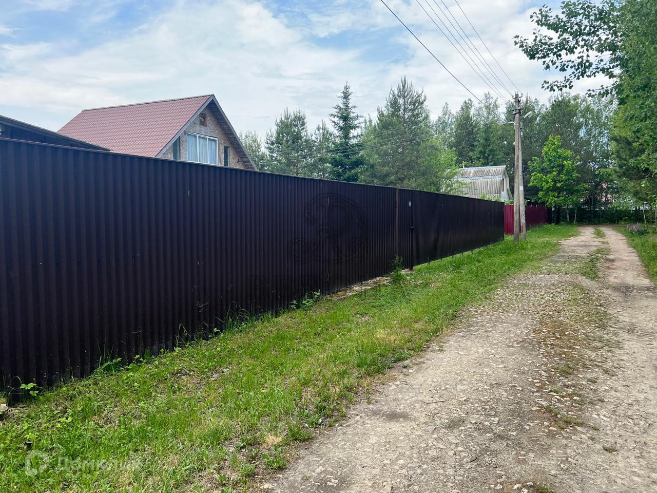 Участок со всех сторон огорожен забором, въезд на него осуществляется через раздвижные ворота. На столбе освещения у участка установлено дополнительное освещение на территорию и камера видеонаблюдения.