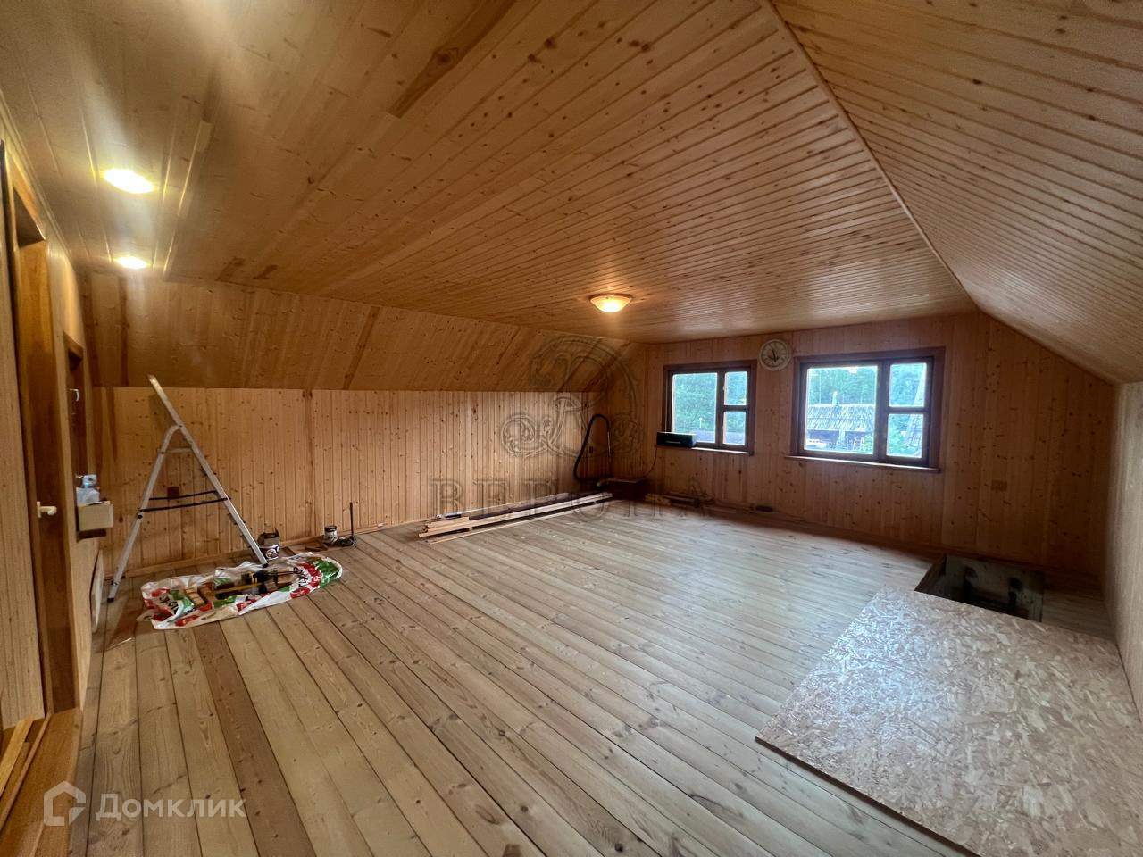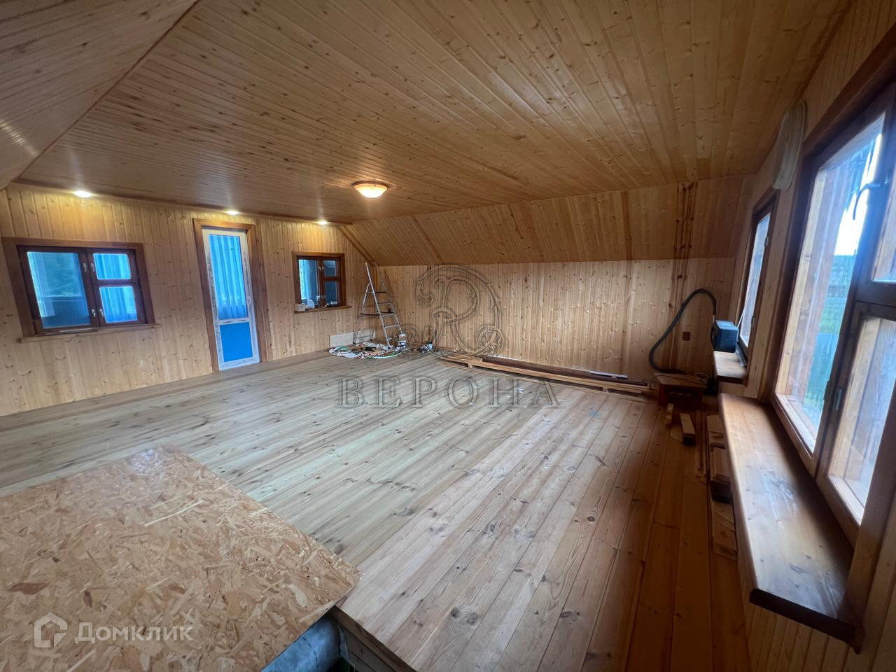 В течение одного месяца пол и стены первого этажа дома будут полностью отделаны деревом и готовы к проживанию.