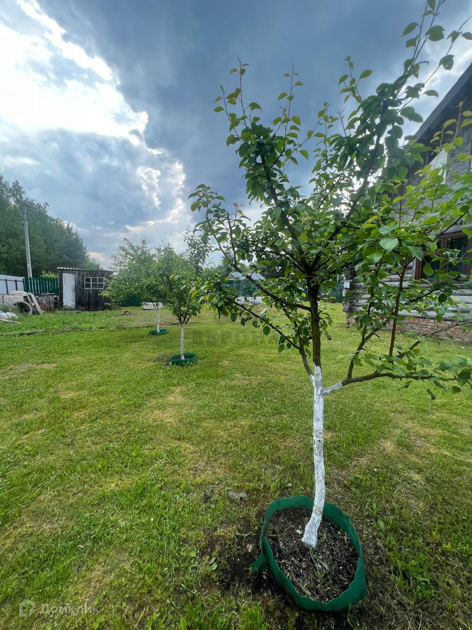 Ухоженный участок, на котором высажены плодовые деревья и кустарники.