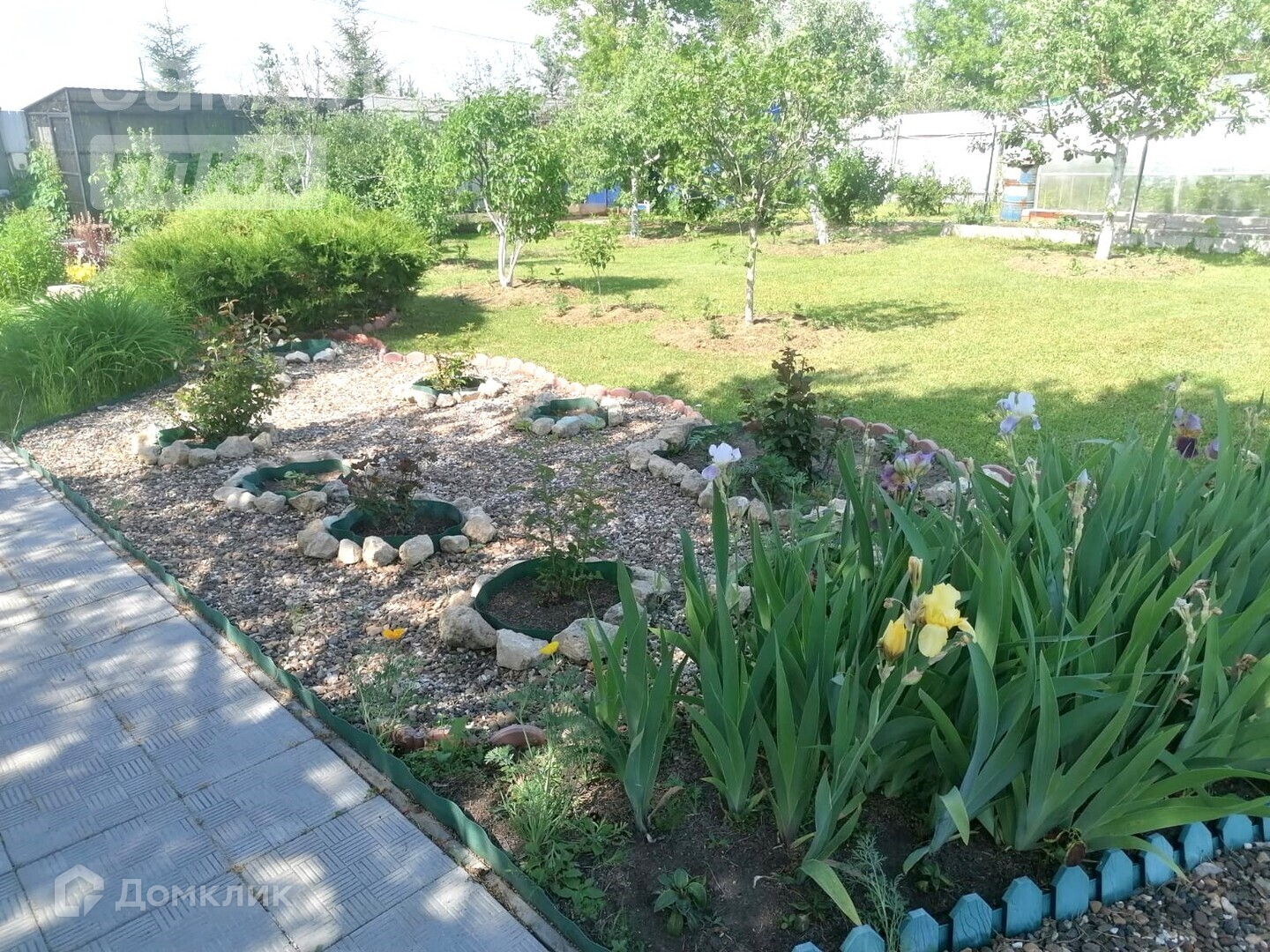 Садовые насаждения : вишня, смородина, жимолость, яблони, виноград, облепиха и многое другое посажено на участке.