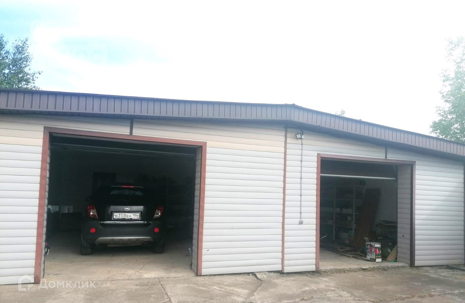 На участке закрытый гараж для двух машин и рядом два открытых парковочных места.