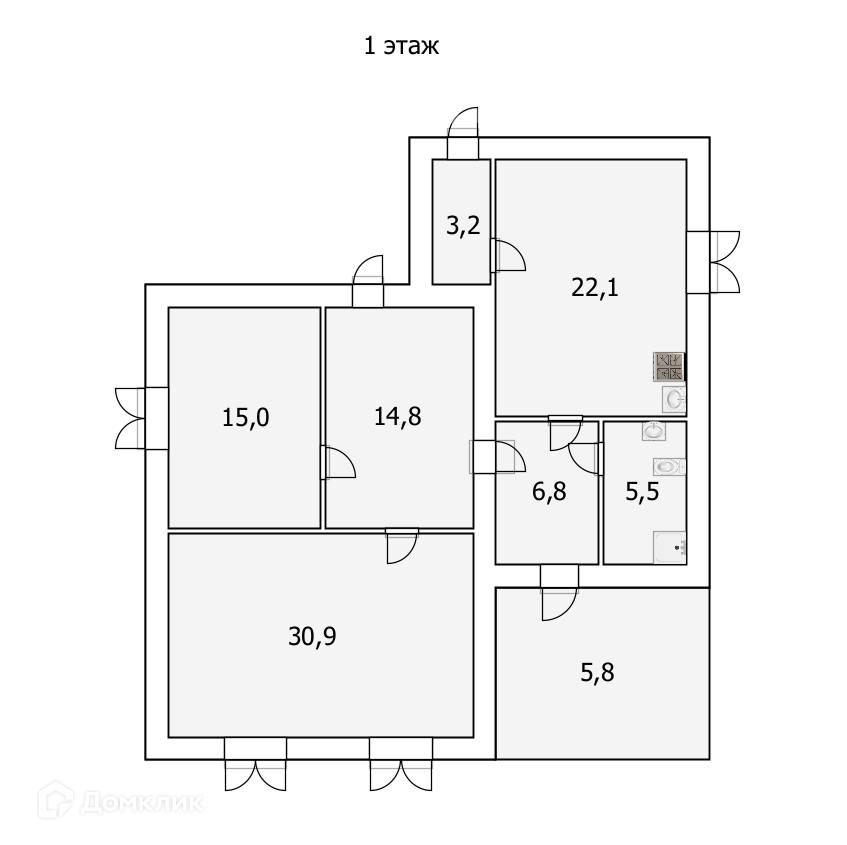 Площадь кухни 22.1 м2