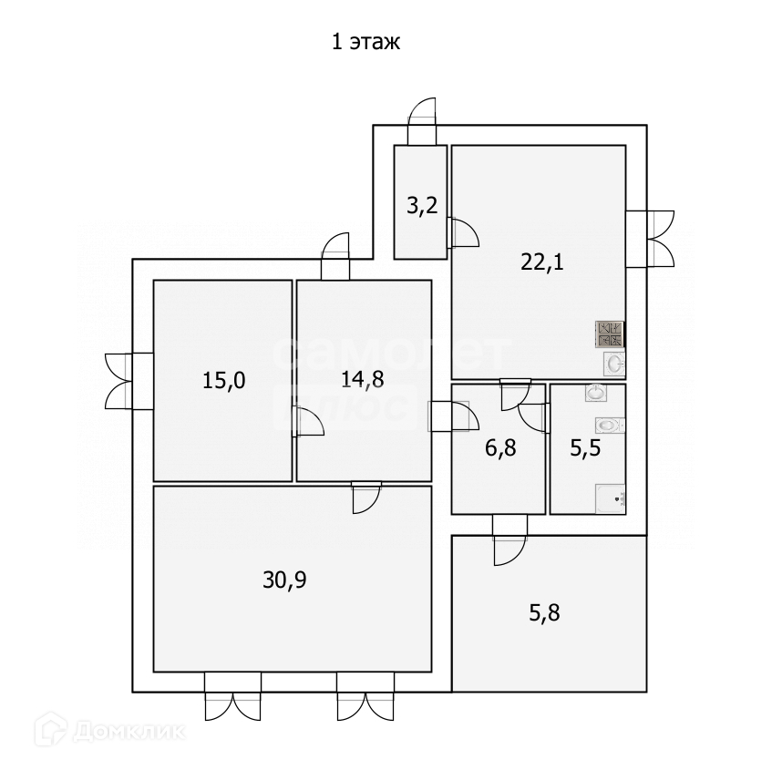 Площадь кухни 22.1 м2