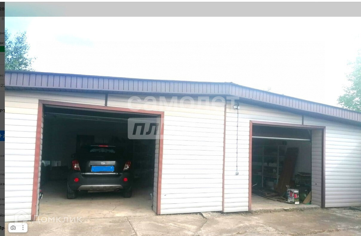 На участке закрытый гараж для двух машин и рядом два открытых парковочных места.