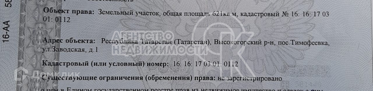 Арт. 54892225 Продается отличный земельный участок 6,2 соток в д. Тимофеевка Высокогорского района.