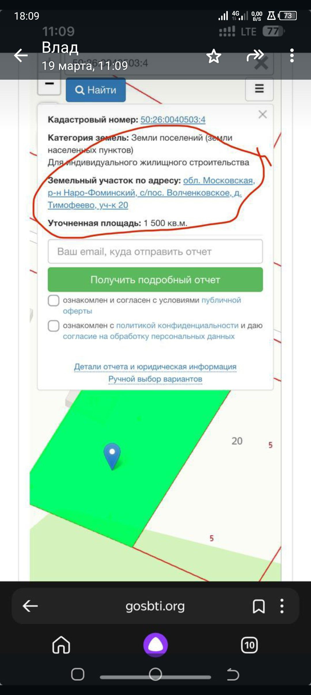 Площадь участка 15 сот.