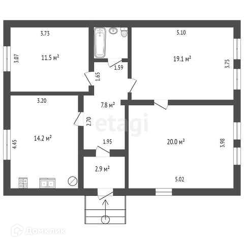 Дом в жилом состоянии, 3 комнаты - 20; 19,1; 11,5 м2, кухня 14,2 м2.