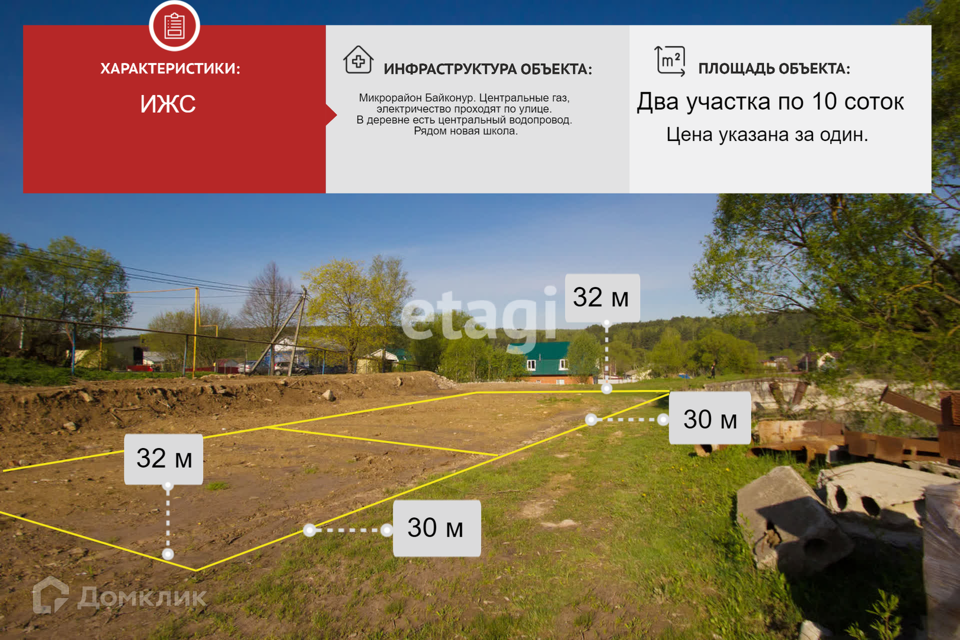 Продается земельный участок 10 соток, расположенный в деревне Тимошево, микрорайон Байконур, городской округ Калуга. Участок ровный, практически, квадратной формы, 32 м в ширину, 30 в длину. Центральные газ, электричество проходят по улице. В деревне есть центральный водопровод. Разрешенное использование ИЖС. К участку ведет хороший подъезд. В пешей доступности детские сады, школа, спортивный зал, торговый квартал, остановки общественного транспорта. В микрорайоне заканчивается строительство новой современной школы, до которой ребенок дойдет пешком. Человек без машины без труда доберется из деревни до остановки и магазина.