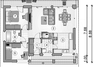 Общая площадь: 50 м2