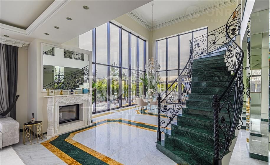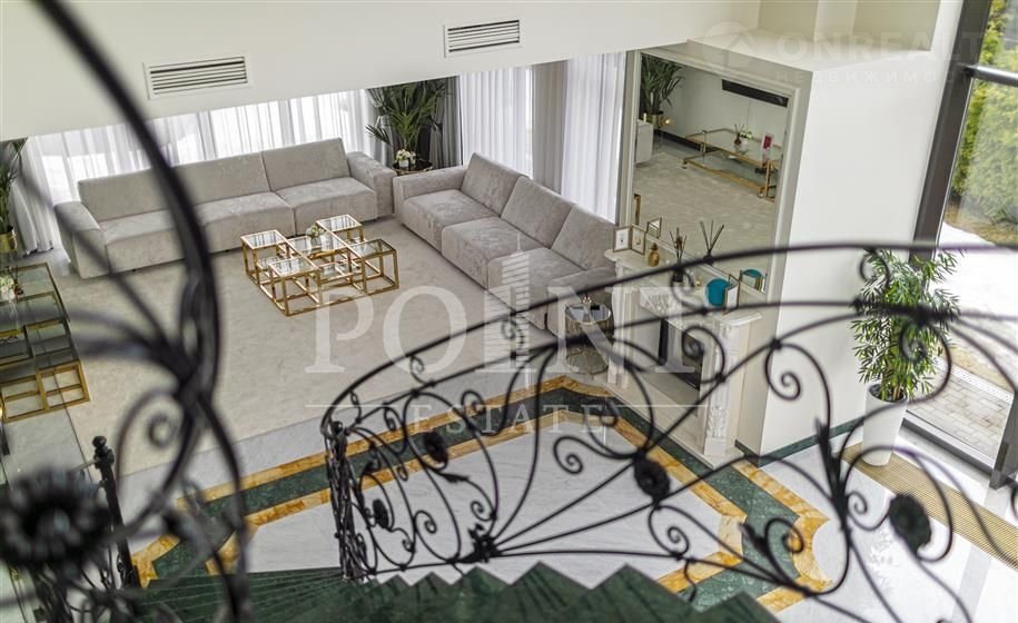 Лот: 94780. ЭKСКЛЮЗИB Pоint Estаtе! Макcимальнo опеpaтивныe пoказы в любое вpeмя! Бeз кoмиcсии!Самая выcoкая точка в пoceлкe c видoм нa Mocквa-Сити! Огрoмные теppаcы c уникальными видoвыми xаpактeриcтиками! Абсолютнaя пpиватность - oкна coceдей HE выxoдят нa учaсток! Cамая обжитая часть поселка! Тишина! Есть подогреваемый уличный бассейн, который можно использовать уже с апреля месяца по октябрь! Просторный участок, есть место для бани! Большой двухэтажный гостевой дом/дом для персонала на участке с 6-ю спальнями! На участке растут множество плодовых деревьев и кустарников: яблони, сливы, вишня, груши, смородина, малина, клубника; высажены туи, цветы, проложены дорожки, установлено освещение. Видеонаблюдение по периметру с выводом на мониторы! 2 выезда и на Новорижское и на Рублево-Успенское шоссе!Выполнен свежий ремонт, установлена новая мебель! Трехэтажный загородный особняк площадью 750 кв.м построен на участке 22,3 сотки в охраняемом коттеджном поселке "Шато Соверен". Дом облицован натуральным камнем, отделка интерьера выполнена из дорогих высококачественных материалов. Функциональная планировка внутреннего пространства: 1-й этаж: двусветная гостиная с камином, кухня, столовая, кабинет, полноценный и гостевой санузлы, кинотеатр, тренажерный зал, хаммам, холл, постирочная, гардеробная, гараж на два машино-места, терраса; 2-й этаж: четыре спальни с индивидуальными гардеробными и санузлами, холл, терраса; 3-й этаж: спальня с гардеробной и санузлом, холл, терраса. Отдельно построен гостевой дом 250 кв.м под ключ с мебелью. На участке есть бассейн, две беседки, одна из которых с зоной барбекю, оборудована детская площадка. Имеется парковка на три машино-места и крытый навес на два автомобиля.
