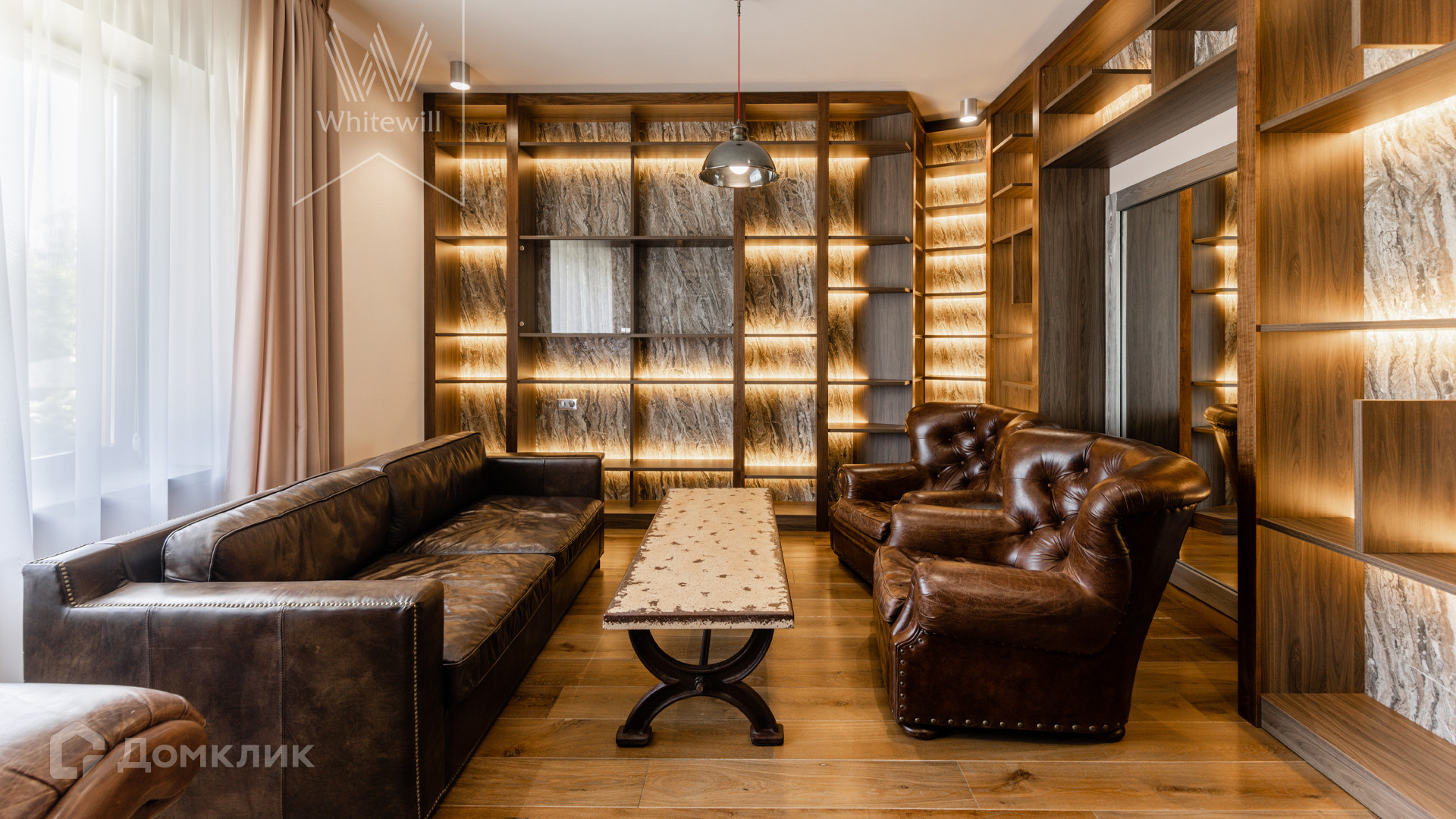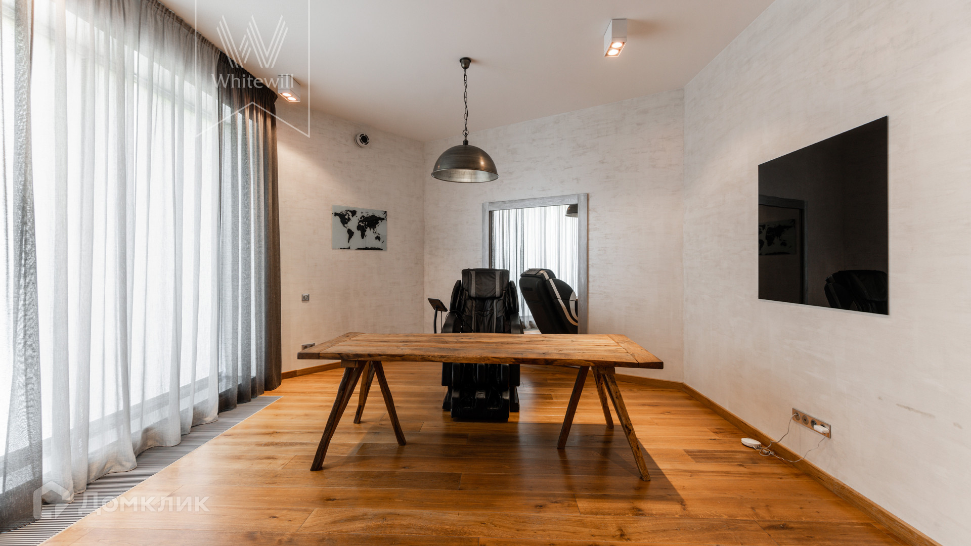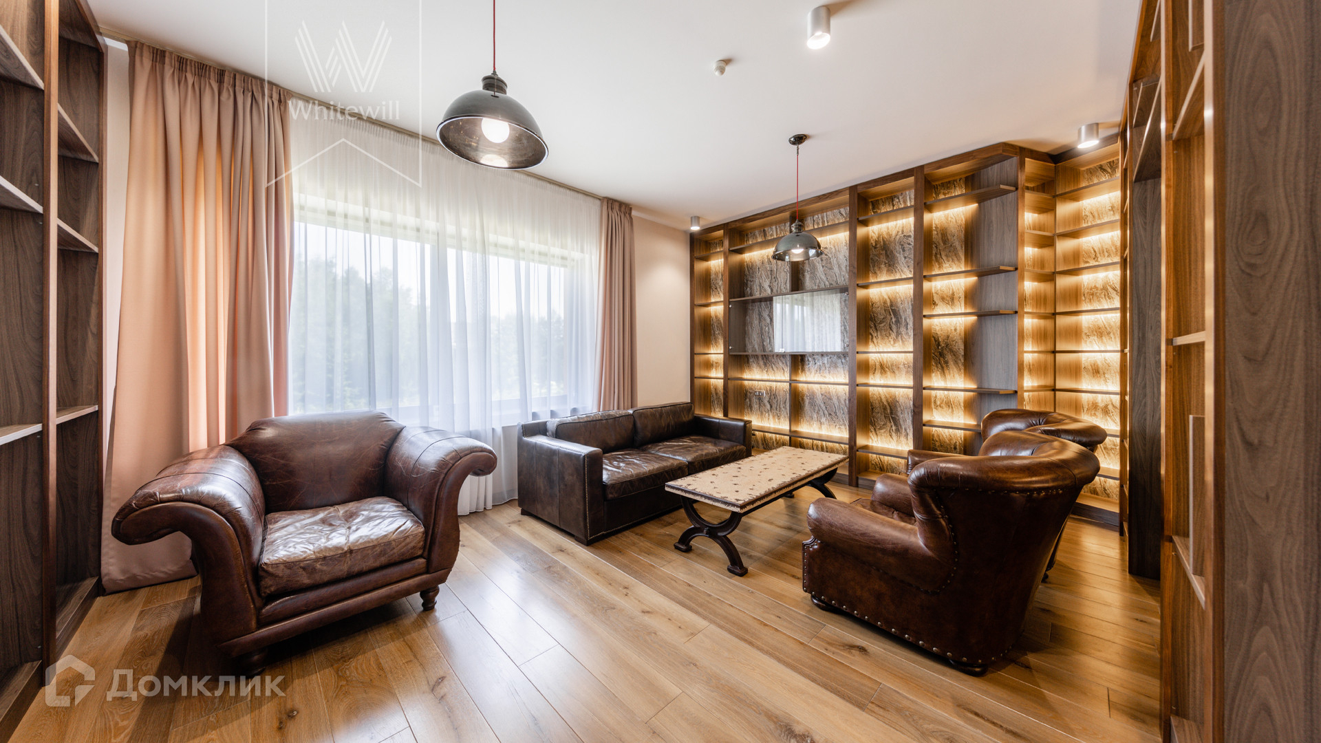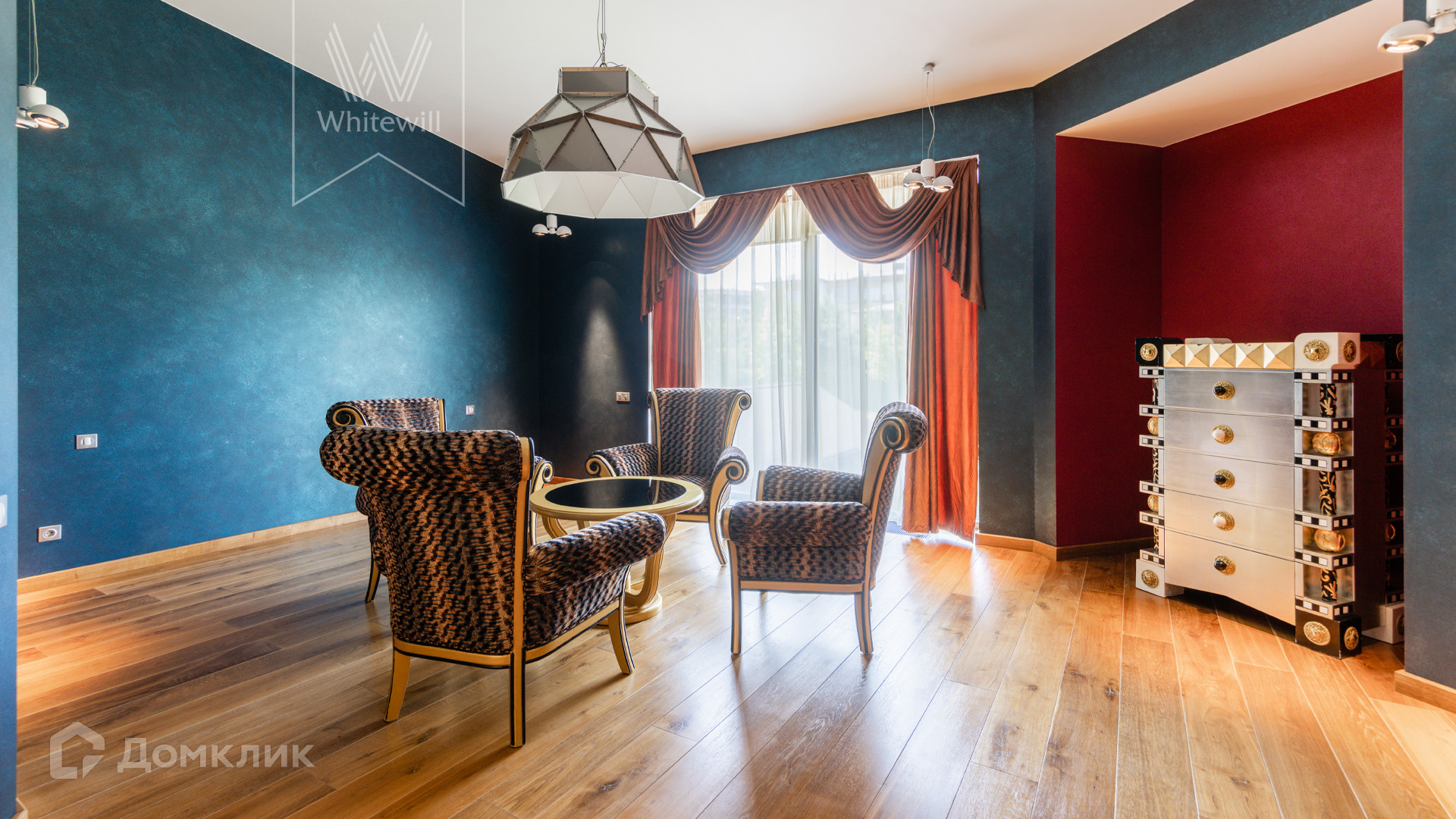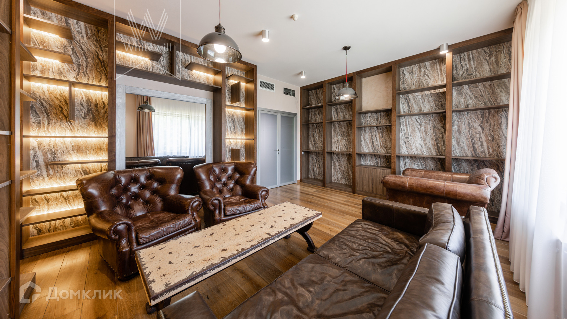ID 8 585. Crystal Istra. Загородная резиденция в современном стиле площадью 1000 м² расположена на участке 39,4 соток с небольшим перепадом высот. Фасад дома облицован лиственницей, камнем, медью и натуральными панелями из португальского пробкового дуба. Со второго этажа с многочисленных балконов открывается вид на деревья и панораму поселка. В цокольный этаж встроен гараж на 3 машины. На первом этаже расположена просторная гостиная с большими окнами, оборудованная кухня и фитнес-зал. Планировкой резиденции предусмотрены 5-7 спален. На участке выполнены дренажные работы и установлена система автополива, площадка для подъезда машин вымощена брусчаткой, посажен газон и живая изгородь. В доме оборудован бассейн.