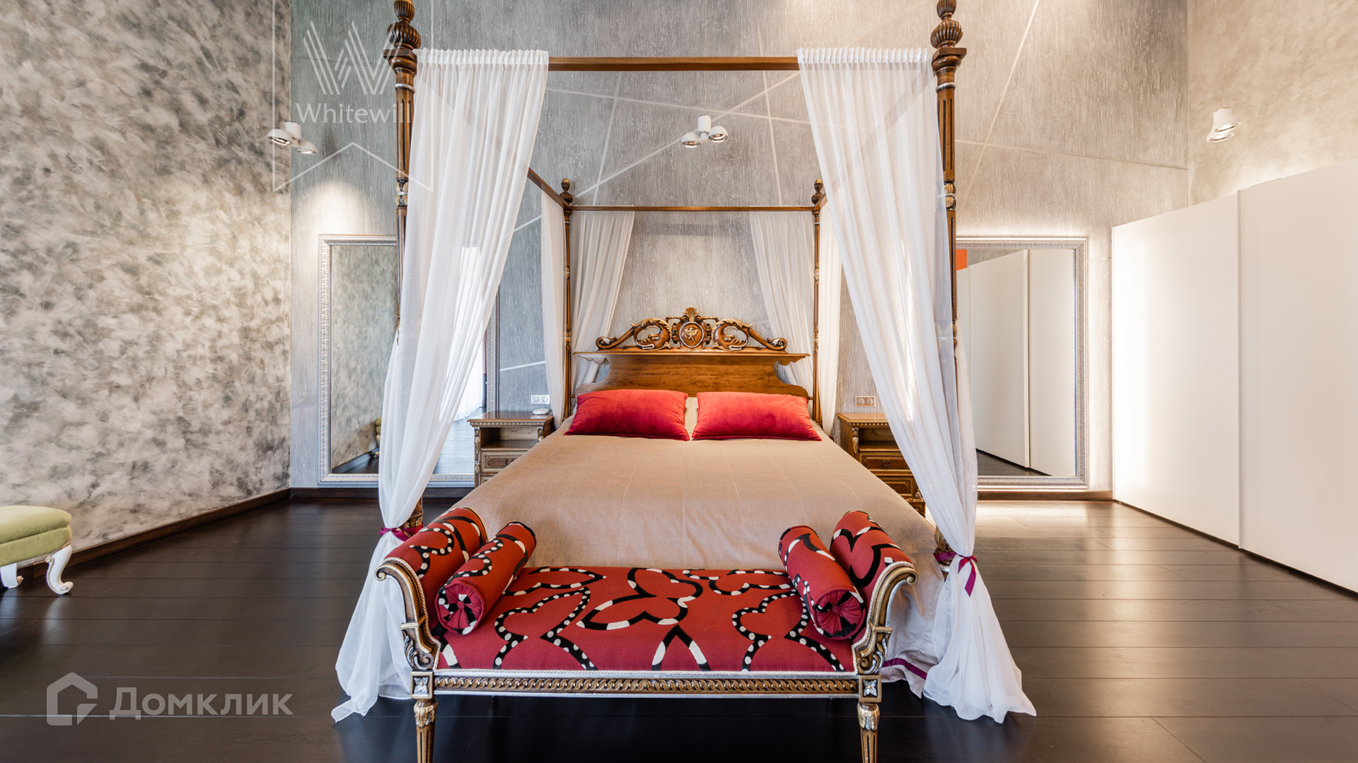 2-й уровень: холл, санузел, гостиная, 3 спальни с санузлами и гардеробными, мастер-спальня с гардеробной и санузлом, будуар, балконы.