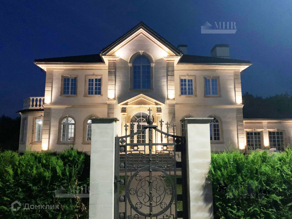 Цоколь дома отделан эксклюзивным камнем Labradorite Extra Blue. Установлена архитектурная подсветка фасада и видеонаблюдение по всему периметру.