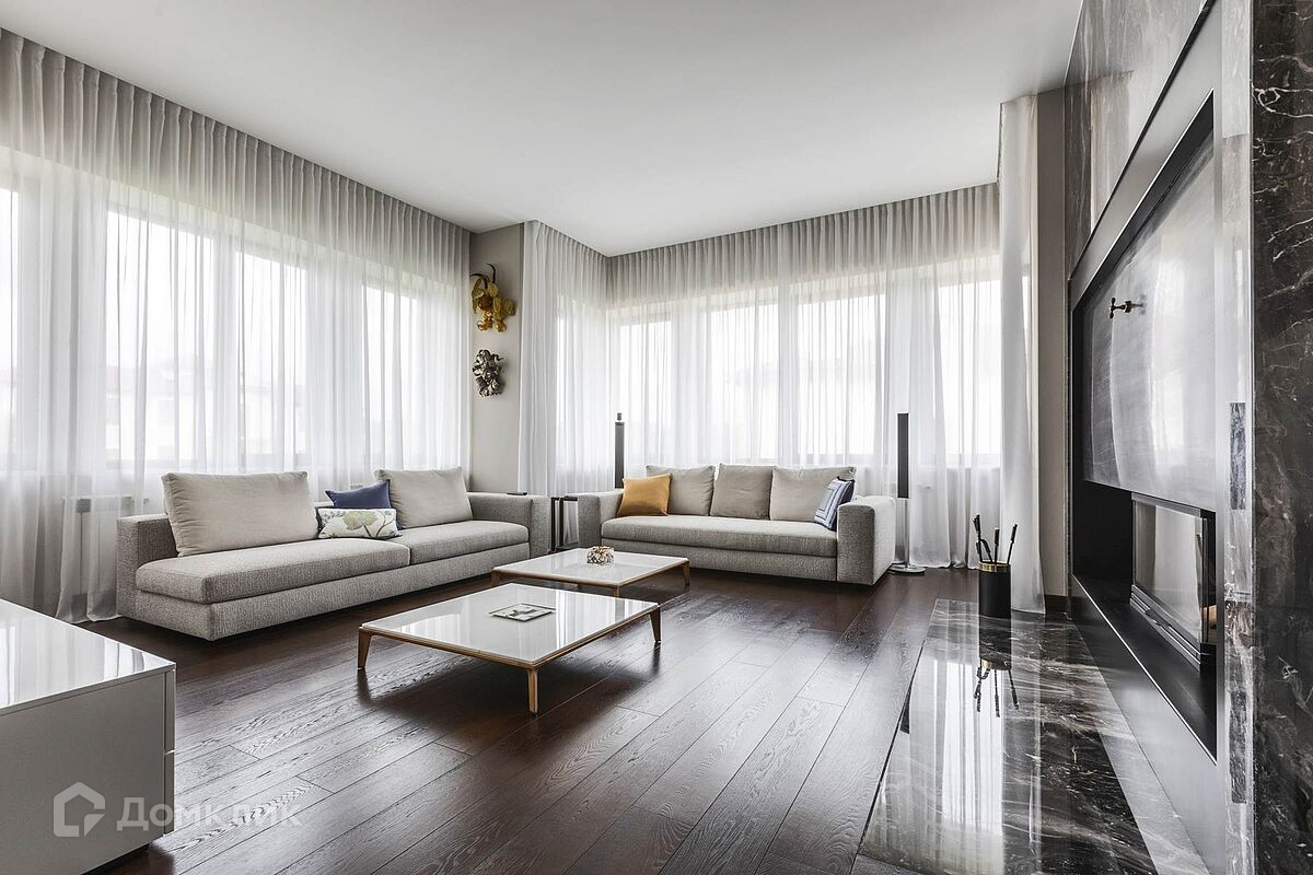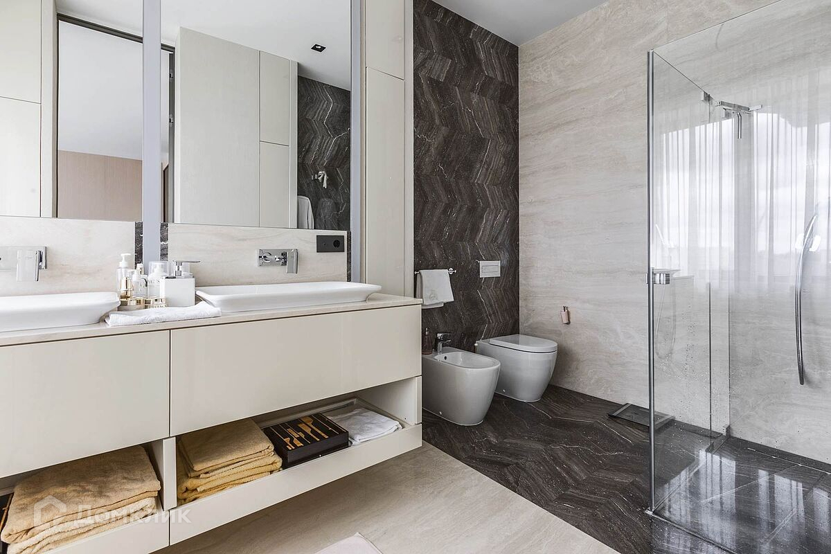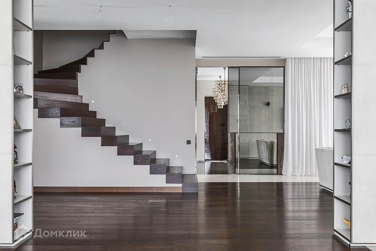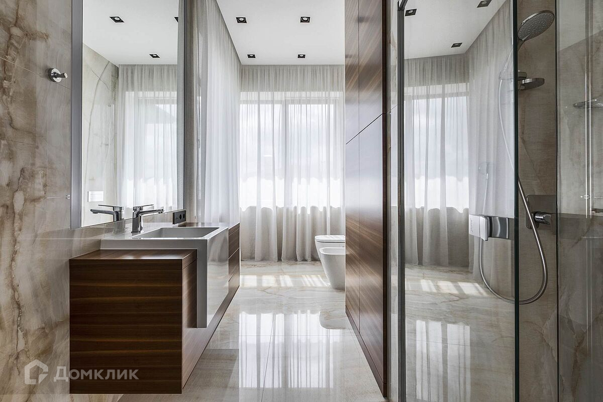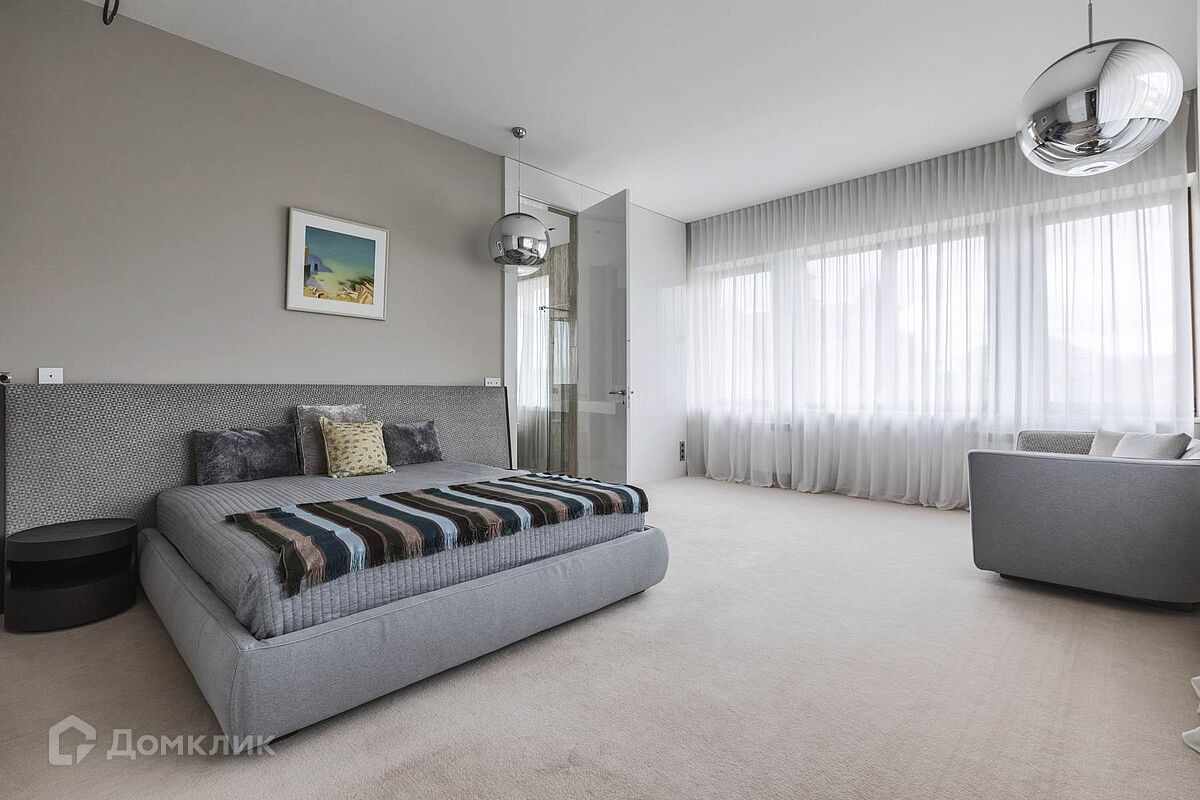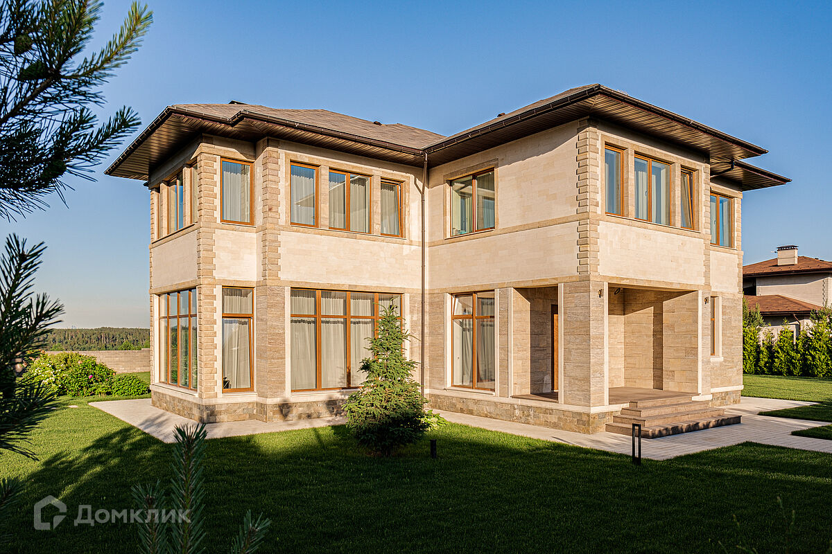 Дом с потрясающим панорамным видом на лес и реку, площадью 438 кв.м. находится на Новорижском шоссе, 18 км от МКАД. В коттеджном поселке Шато Соверен. Поселок находится на самой высокой точке Подмосковья 118 метров над уровнем моря и полностью окружен лесом. Дом построен из кирпича в 2 этажа. В доме панорамное остекление, высокие потолки, комфортная понятная планировка. Дом светлый и очень уютный. В отделке фасада использован натуральный камень. Полы в прихожей, гостиной, два санузла и камин выполнены из натурального камня, привезенного из Италии мрамора и травертина. Паркет от итальянской фабрики IPF, керамогранит от итальянского премиум-производителя Fiandre. Раздвижные двери и стеновые панели от итальянской премиальной фабрики LONGHI. Сантехника топовых брендов: HIPPE, Cielo, Gessi, Bisazza, Antonio Lupi, Duravit, Ideal Standard. Кухня фабрики Mittel. Планировка дома: 1-й этаж: просторный холл с гардеробной комнатой, с/у, просторная гостиная, большой зал с выходом на участок, кухня-столовая с панорамными окнами и выходом на участок. 2-й этаж: спальня с с/у и гардеробной, спальня с с/у и гардеробной, спальня с с/у и гардеробной, вторая гостиная зона с камином
