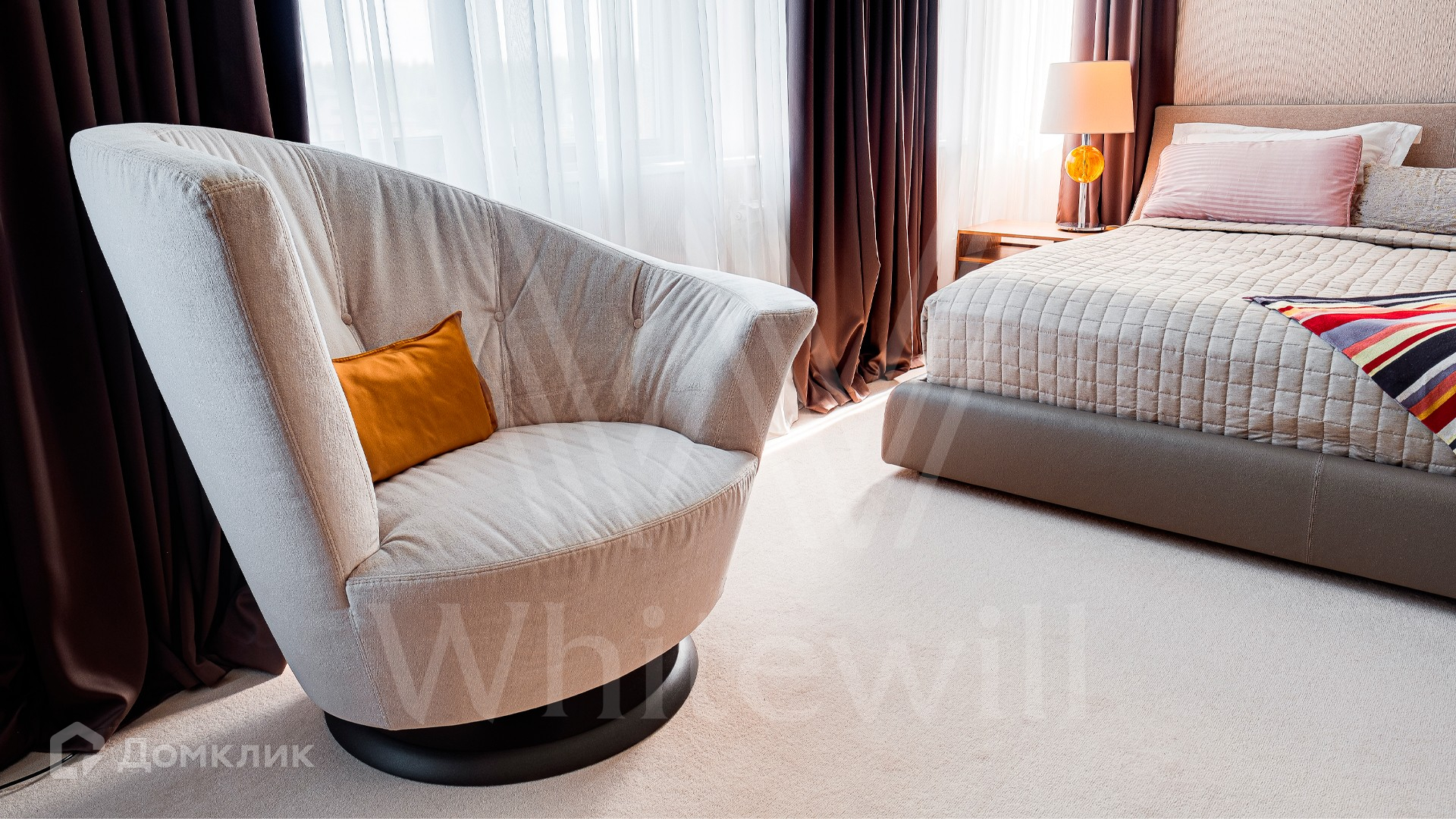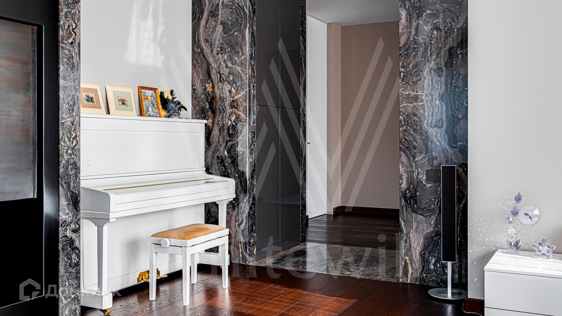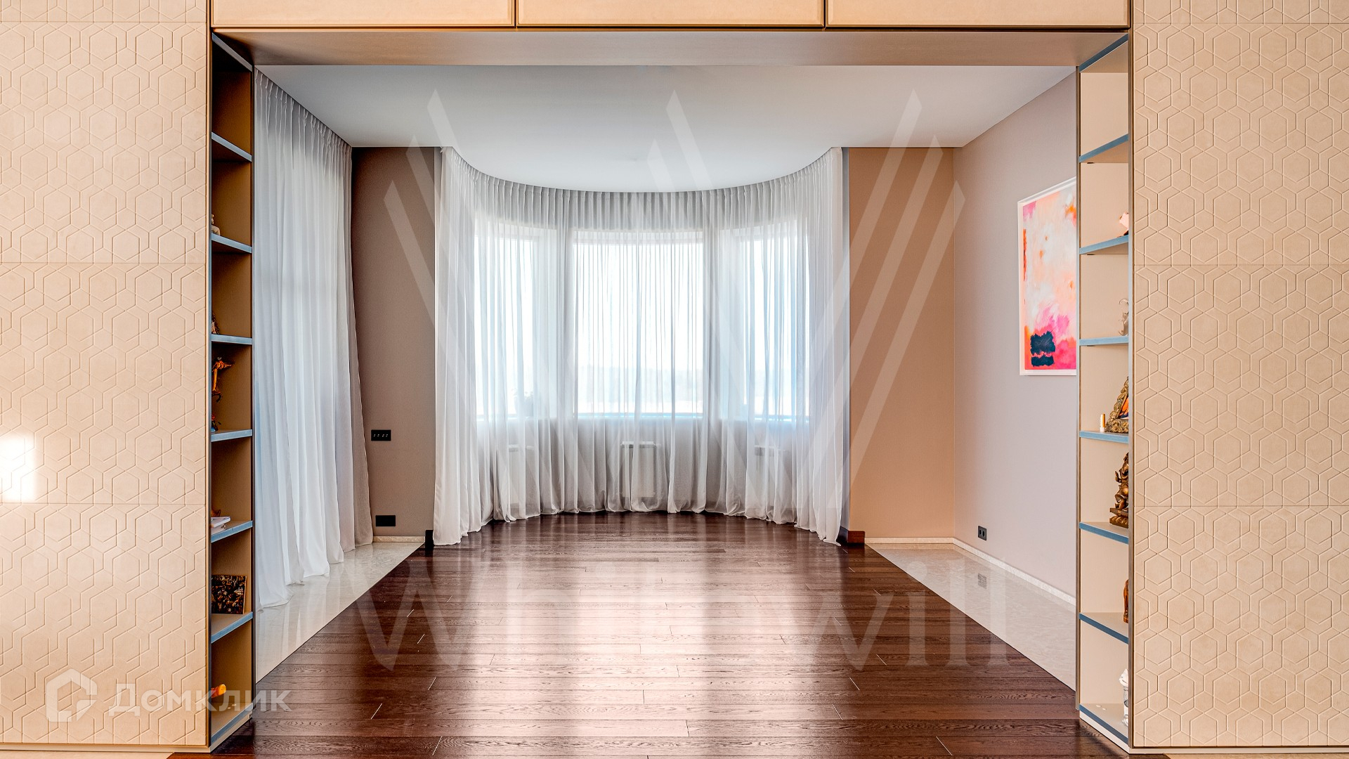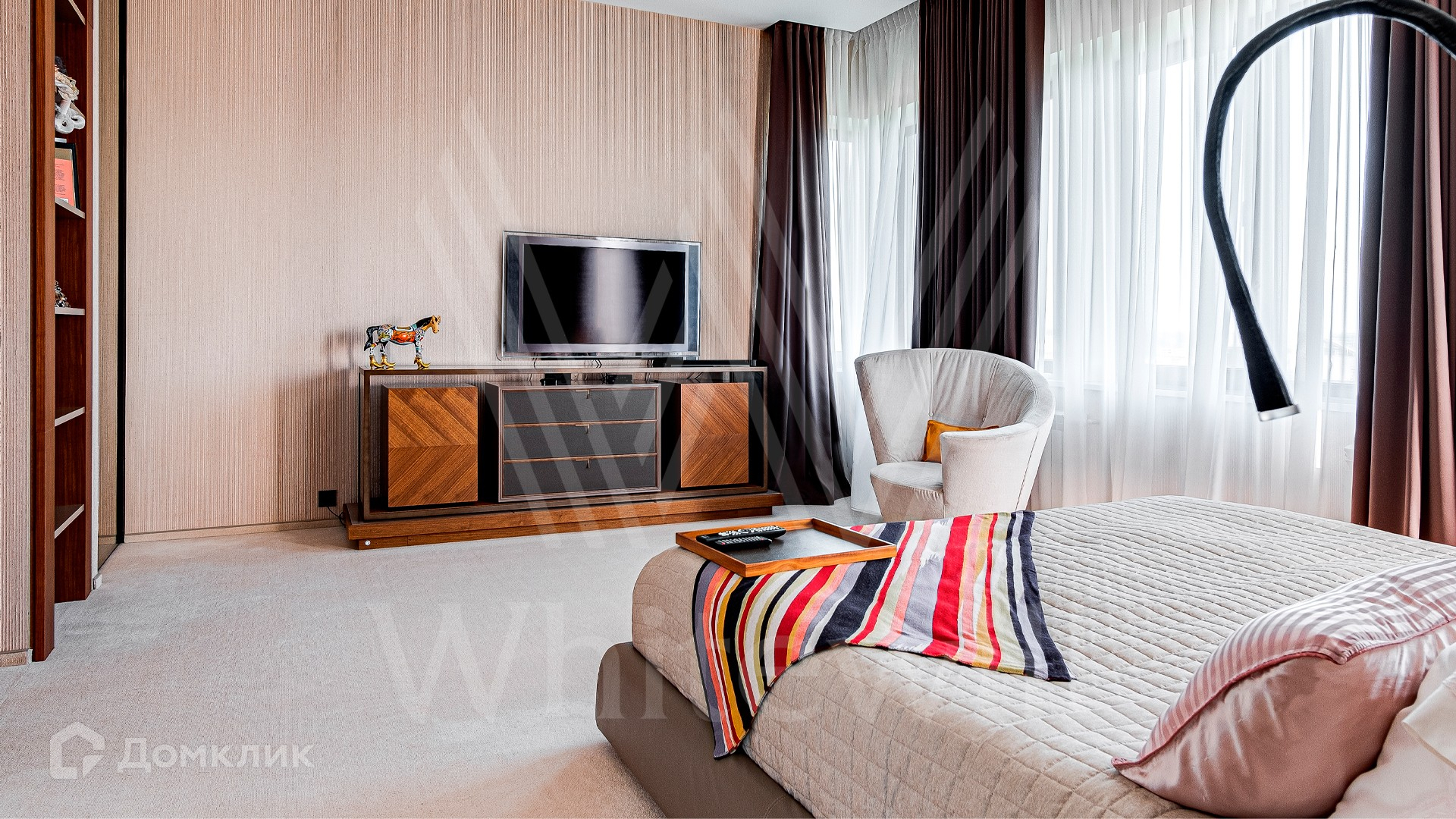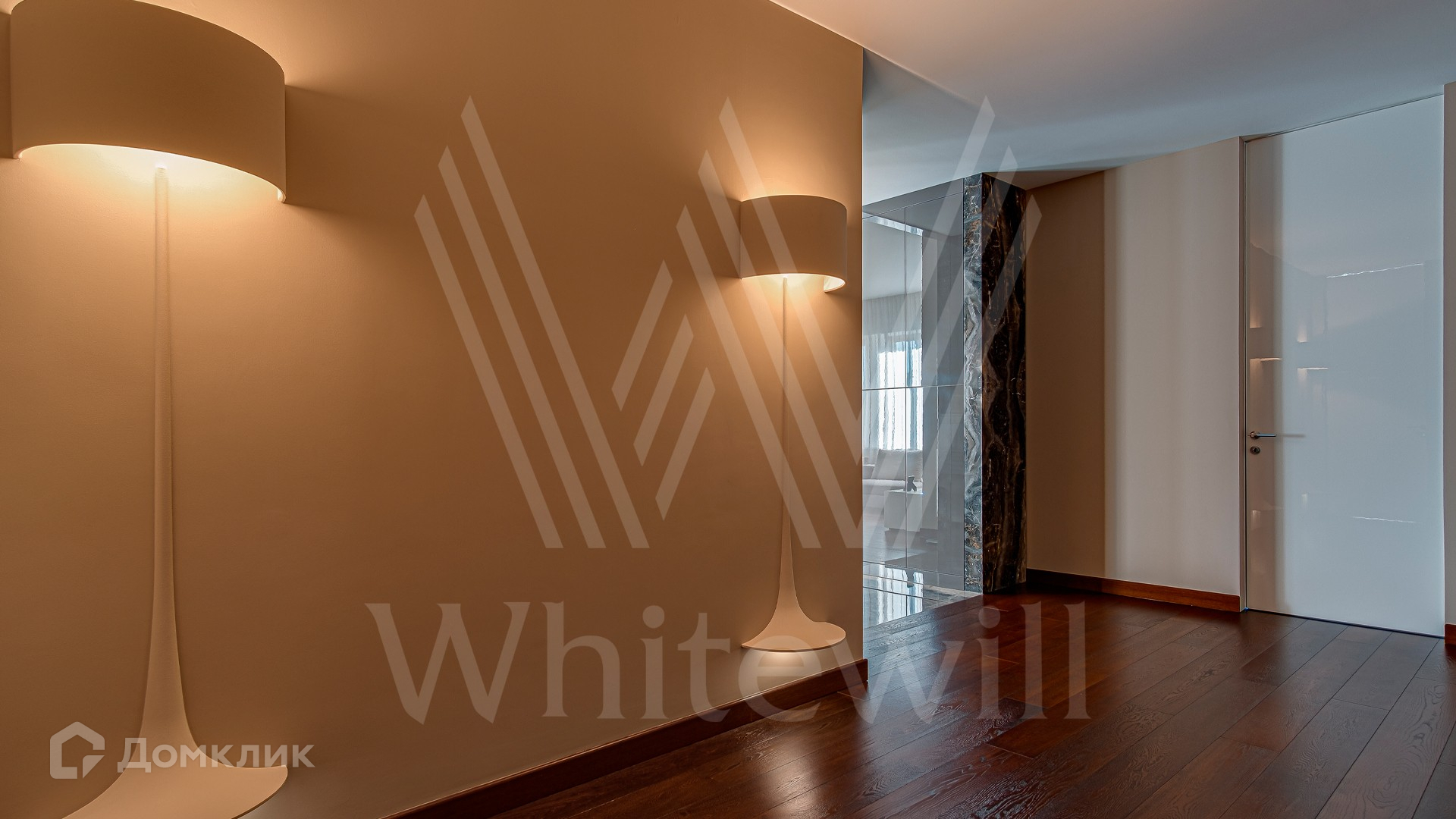 2-й уровень: холл, спальня с ванной комнатой и гардеробной, 2 спальни с ванными комнатами и гардеробными, гостиная зона.