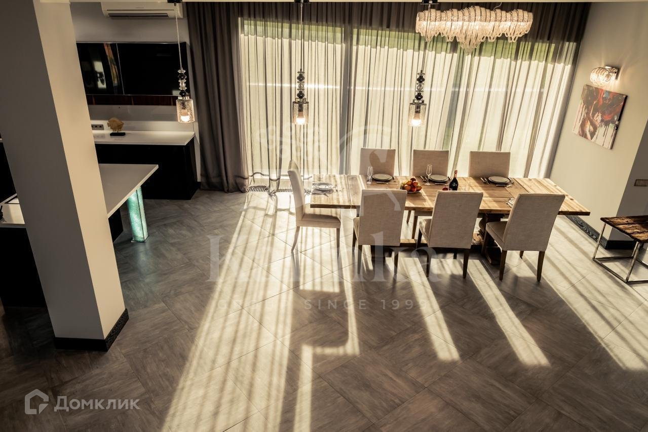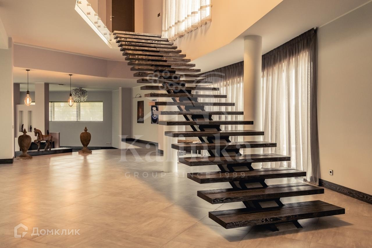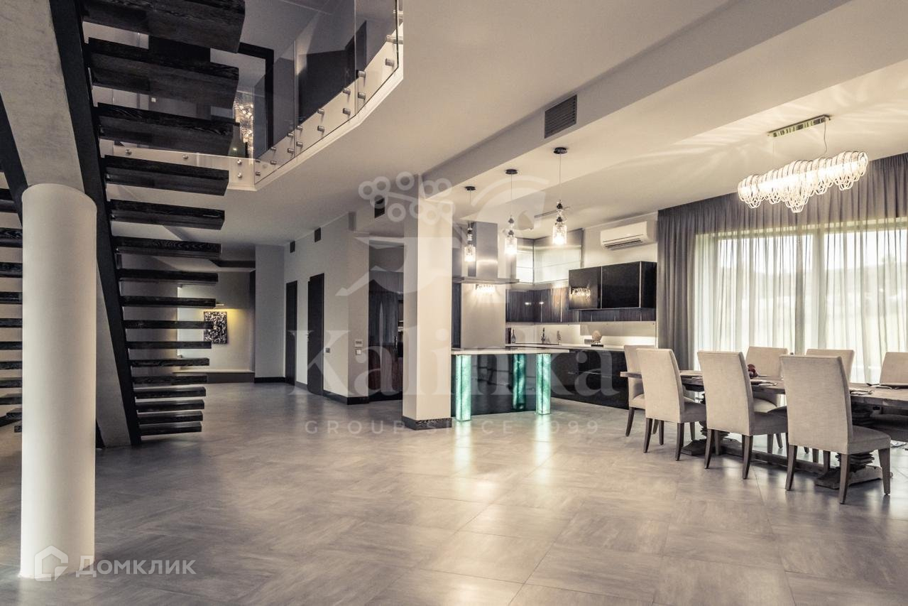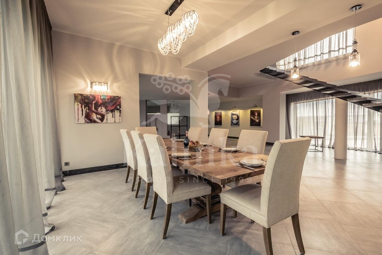 В доме панорамное остекление. В отделке интерьеров использовались дорогие, качественные материалы (камень, дерево, ковка).