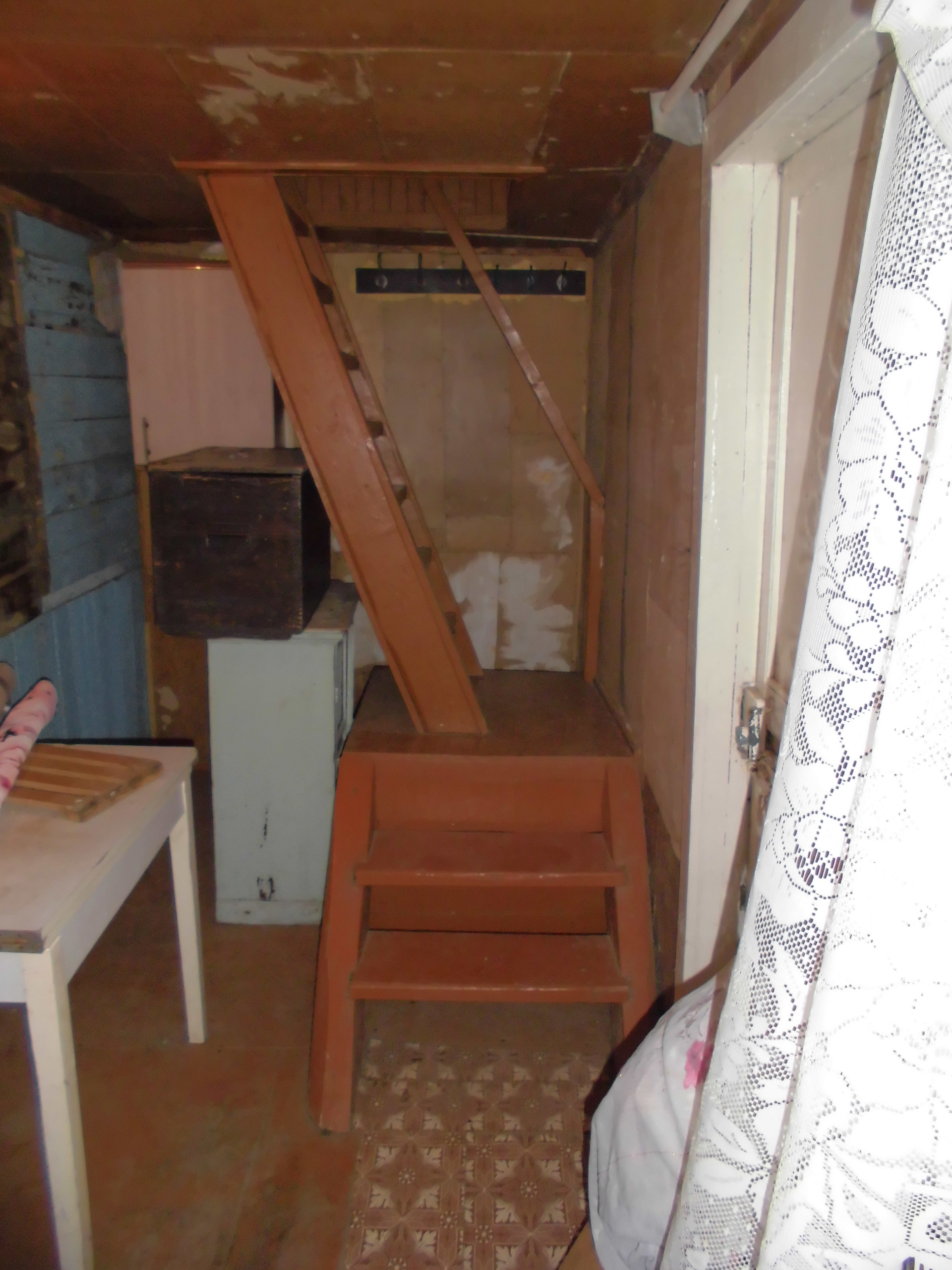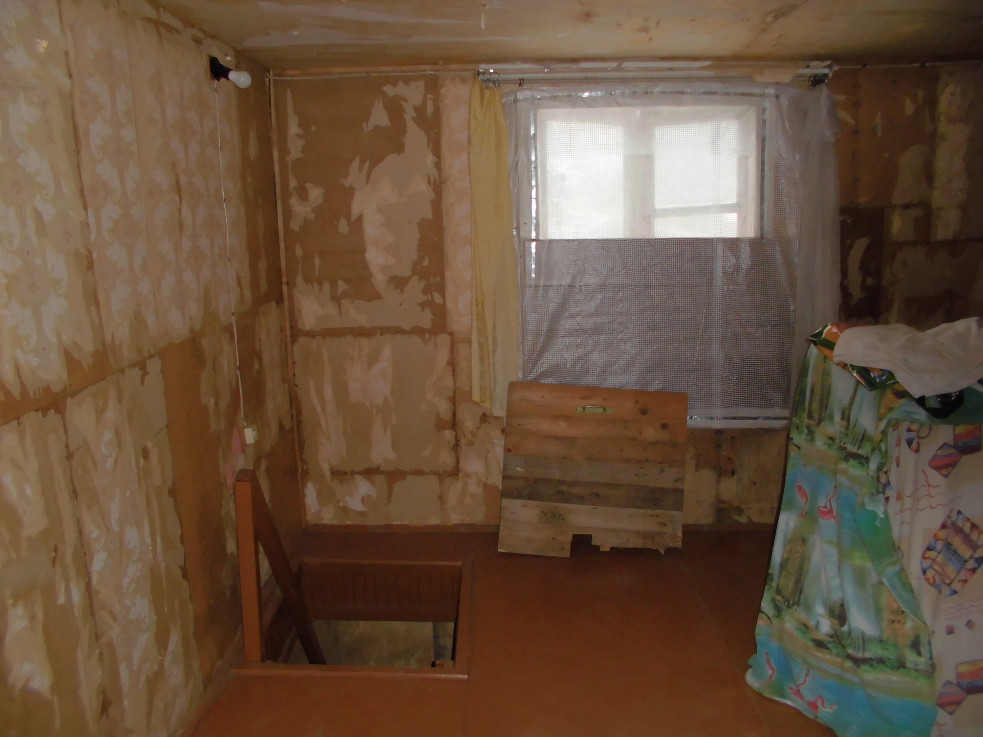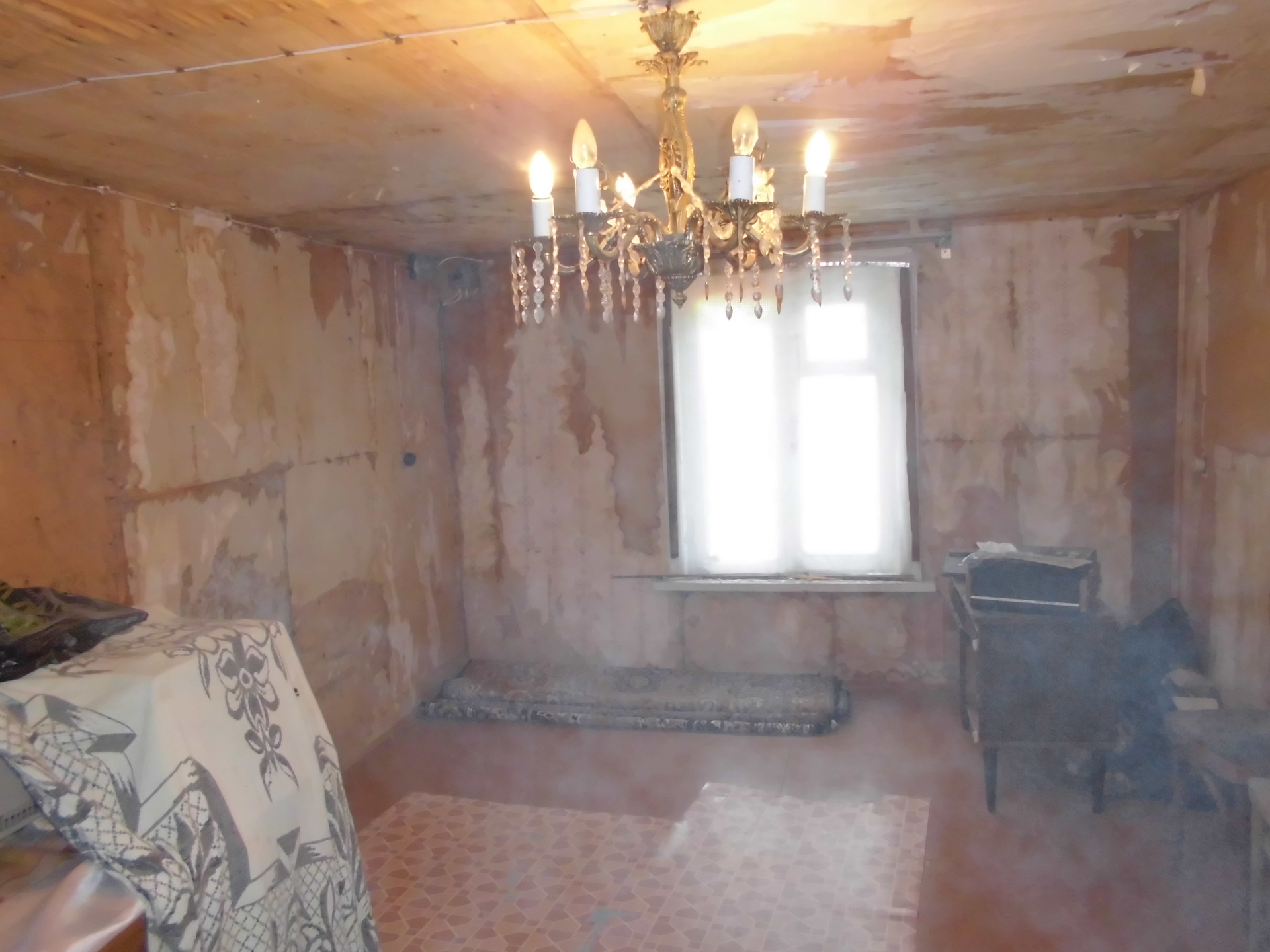 Общая площадь дома 42,9  кв.м. На первом этаже комната, кухня и просторная прихожая, на втором – мансарда 20 кв.м. Фундамент каменный, стены тесовые, перекрытия деревянные, полы дощатые. Обои сняты. Крыша новая – металлопрофиль. Два выхода - центральный и на задний дворик.