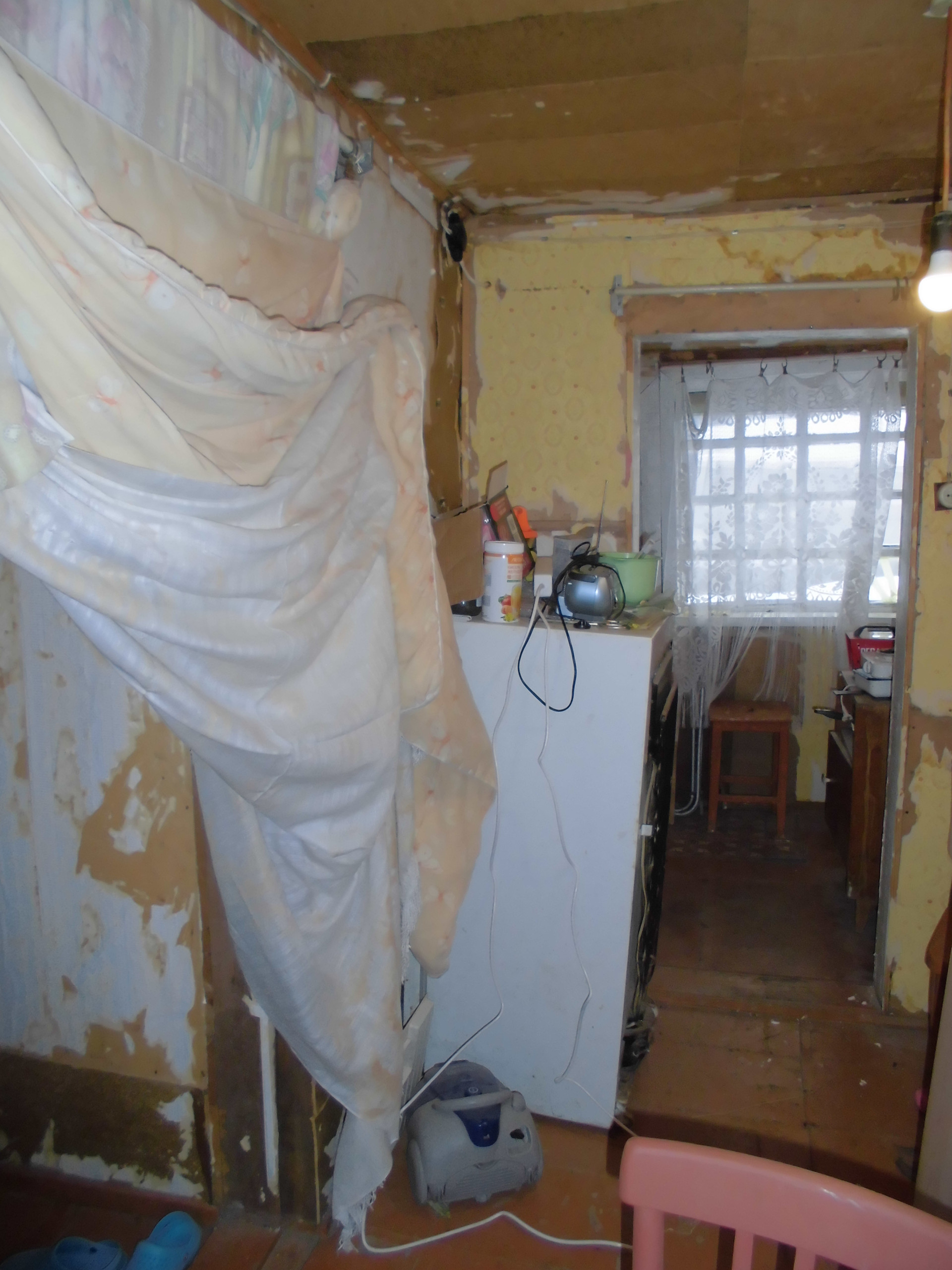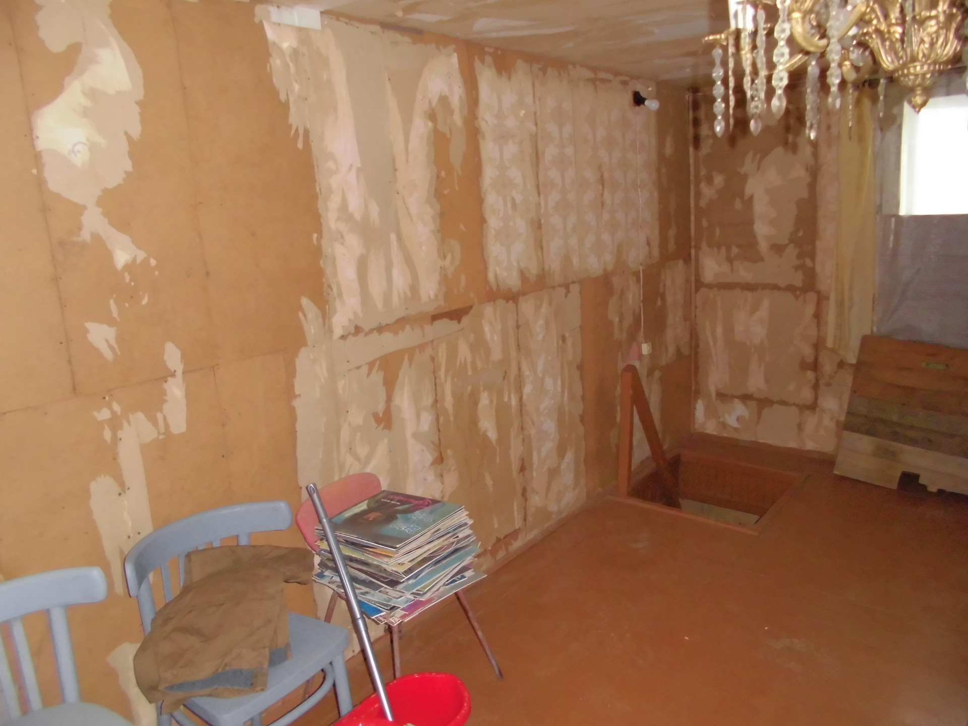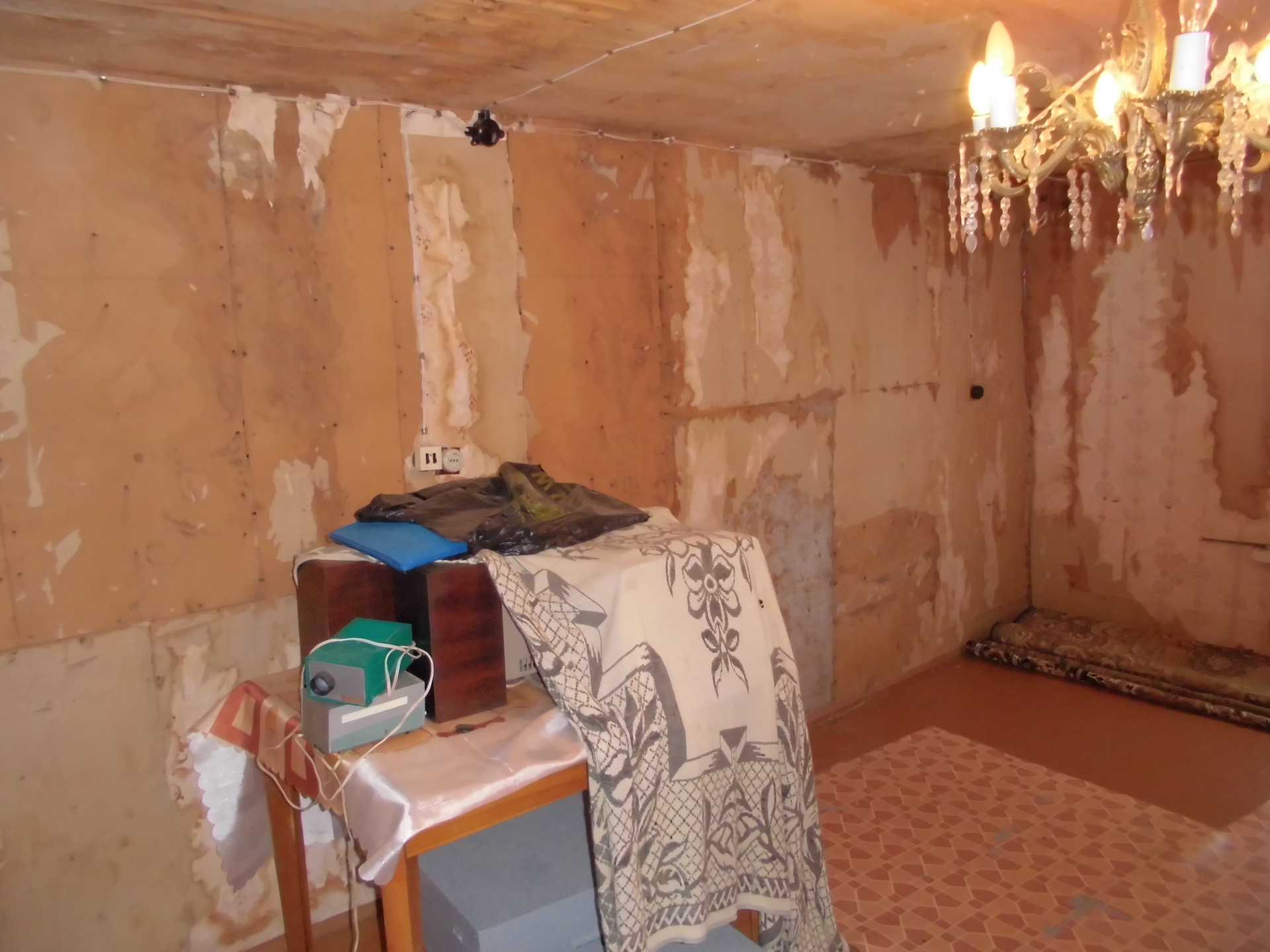 Общая площадь дома 42,9  кв.м. На первом этаже комната, кухня и просторная прихожая, на втором – мансарда 20 кв.м. Фундамент каменный, стены тесовые, перекрытия деревянные, полы дощатые. Обои сняты. Крыша новая – металлопрофиль. Два выхода - центральный и на задний дворик.