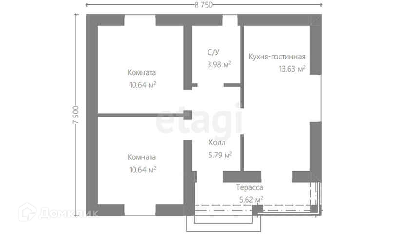 Общая площадь 55 м2