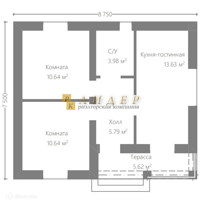 Общая площадь 55 м2