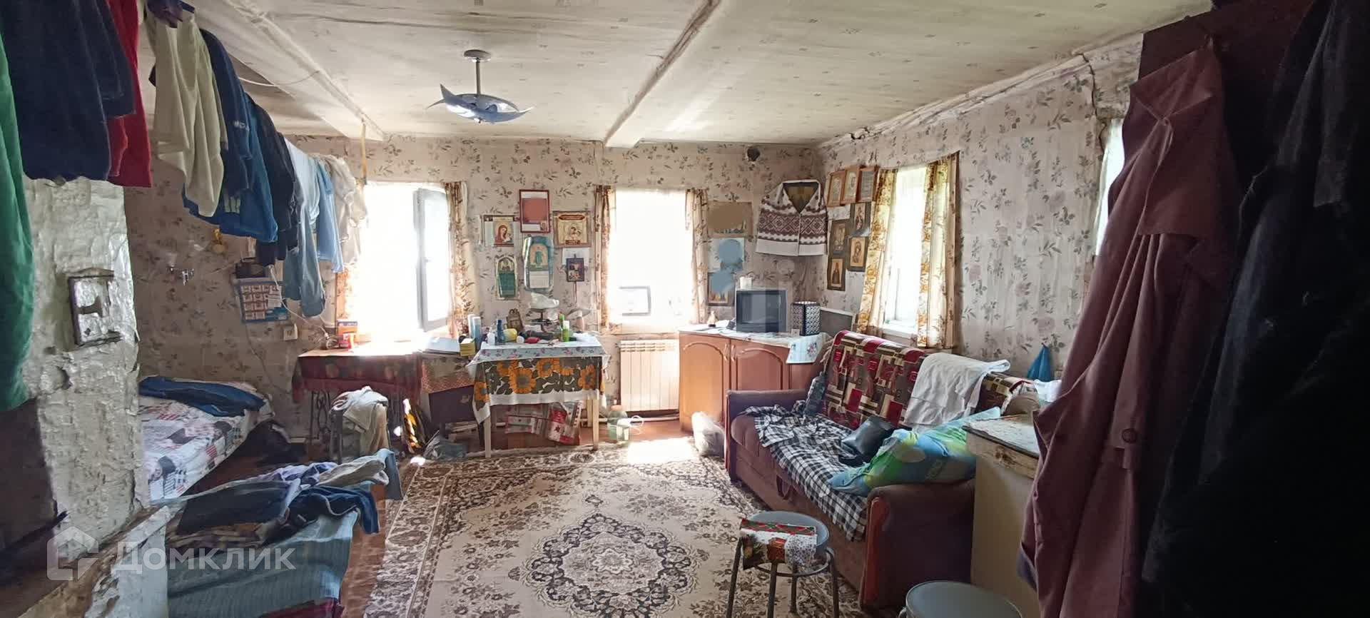 Дом крепкий, бревенчатый с газовым отоплением, есть функционирующая русская печь с лежанкой и плитой. Деревенский домик требует косметического ремонта.