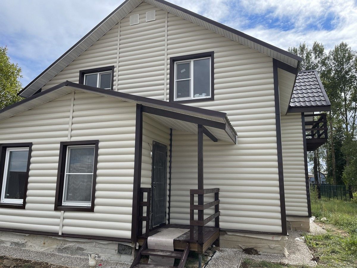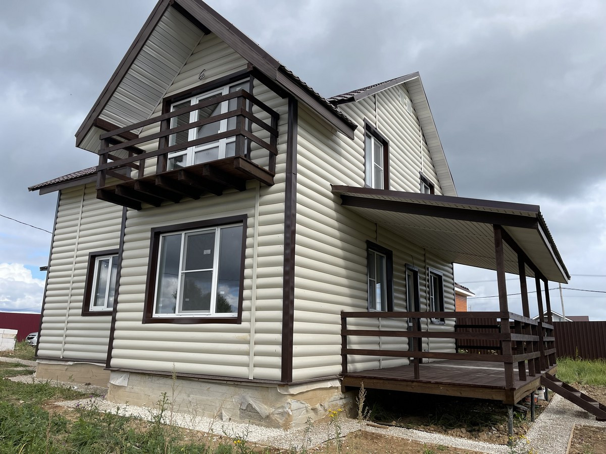 Общая площадь - 170 кв.м.; Материал дома пеноблок ; Внешняя отделка дома  сайдинг, внутренняя –штукатурка , обои. ; Утепление дома - стены 100 мм; пол, потолки, крыша - 150 мм.; Окна - двухкамерные стеклопакеты Rehau; Крыша - металл черепица; Фундамент - монолитная плита; Полы - ламинат. Потолок-натяжной.
