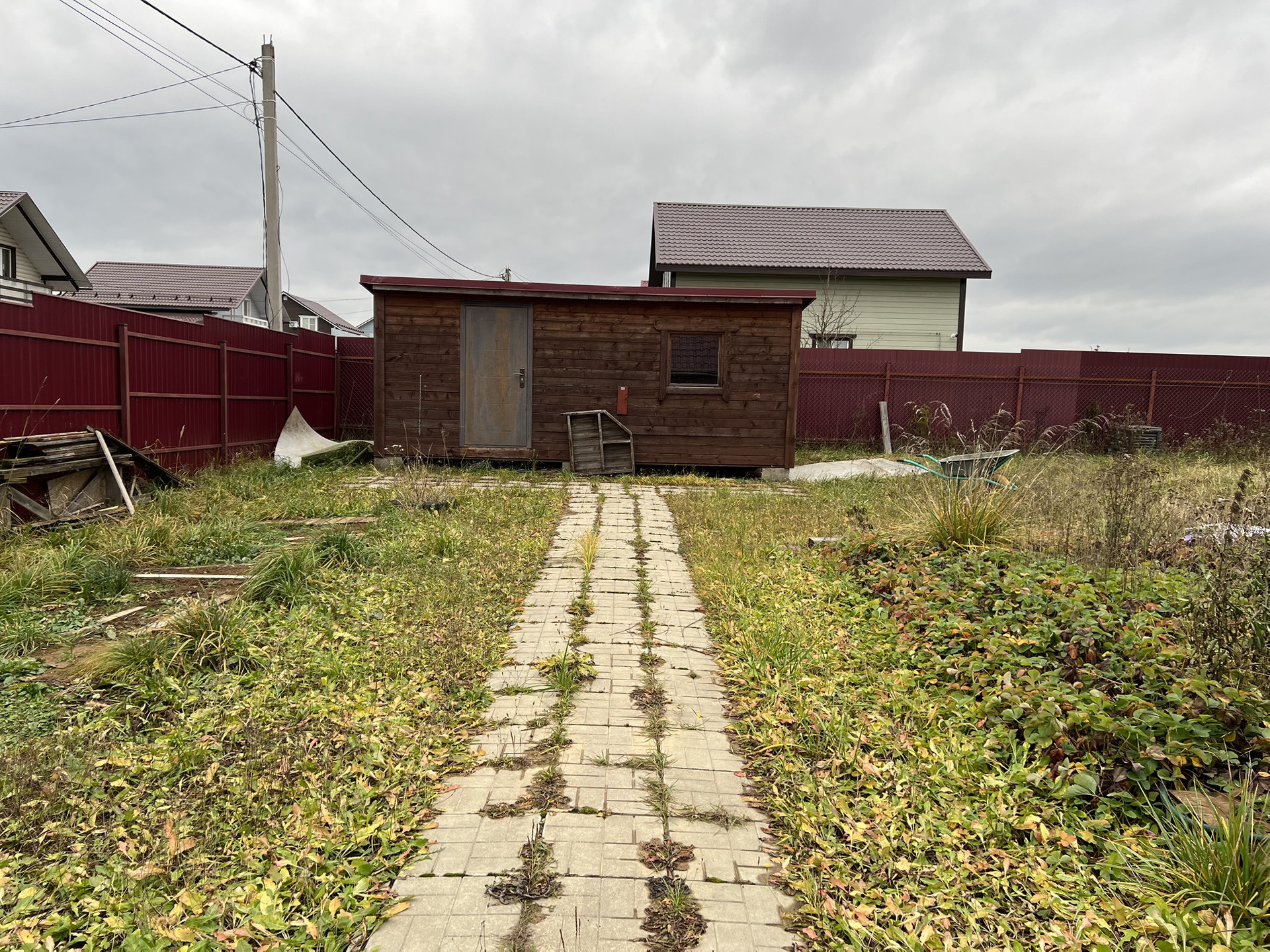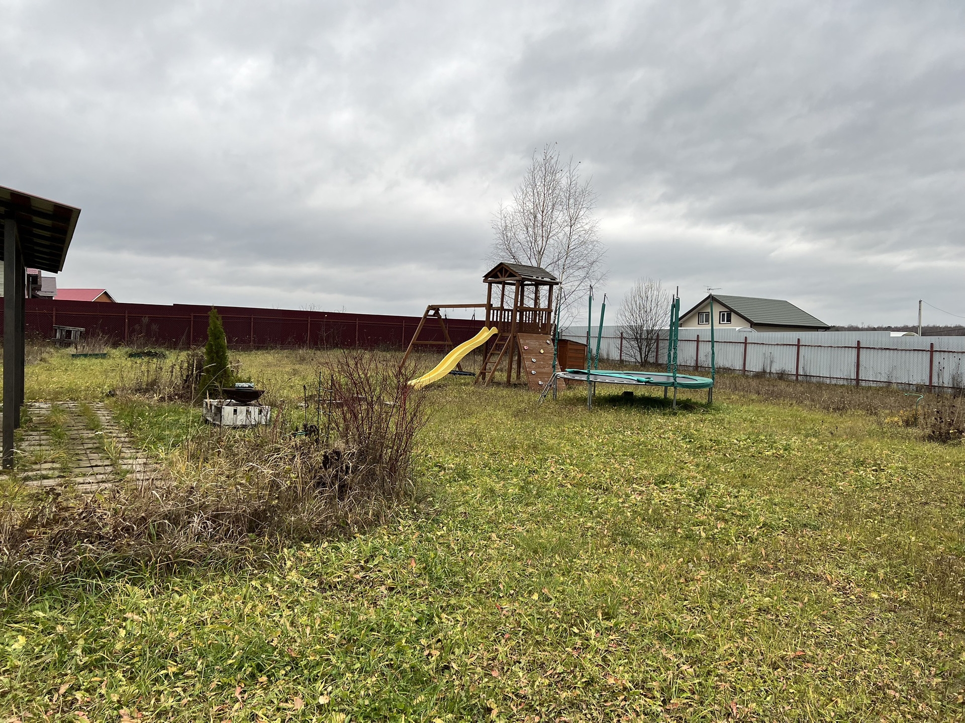 На участке две подсобки - одна использовалась для хранения инструментов, другая - для работы в летнее время. Есть детская площадка.
