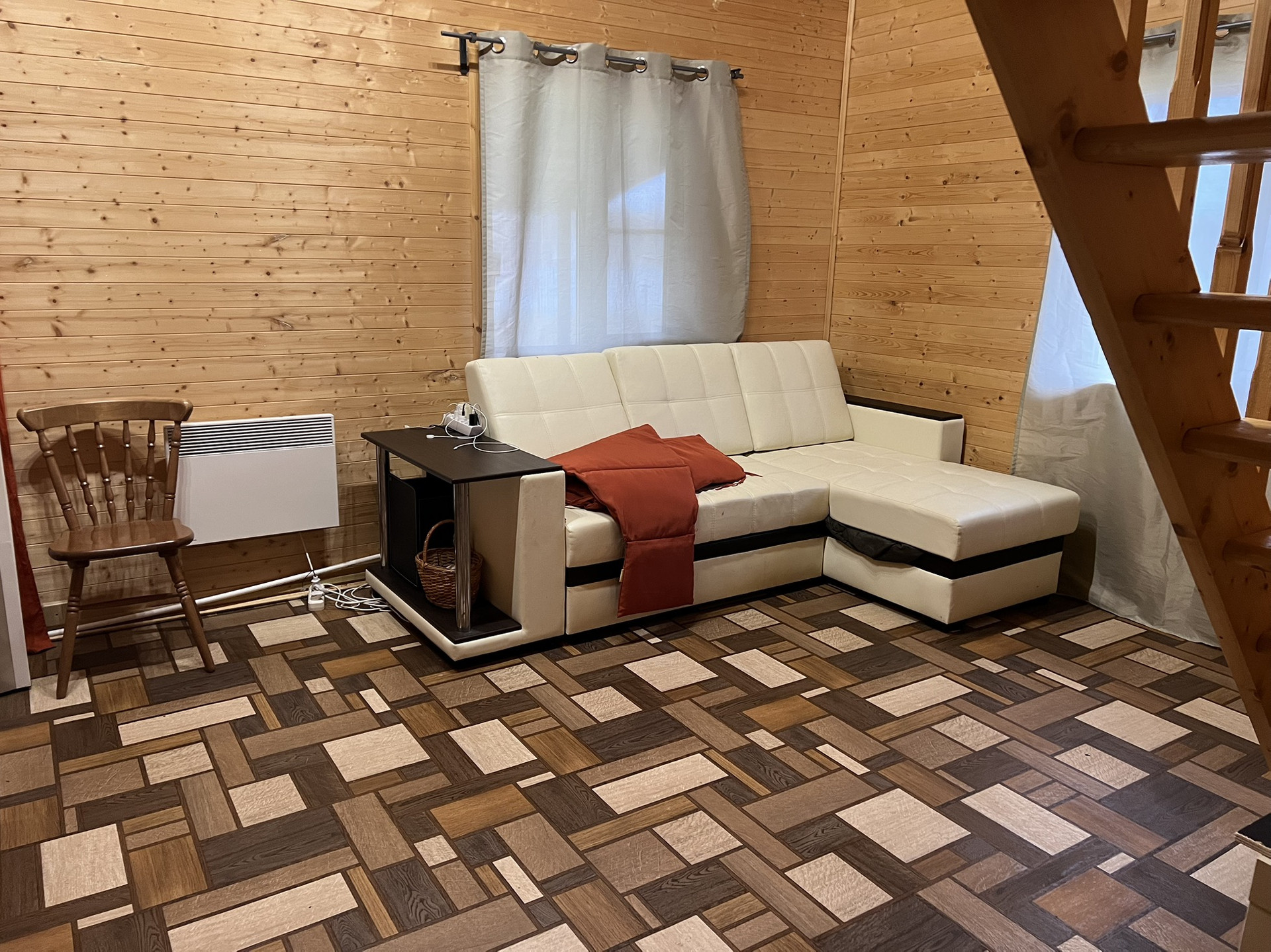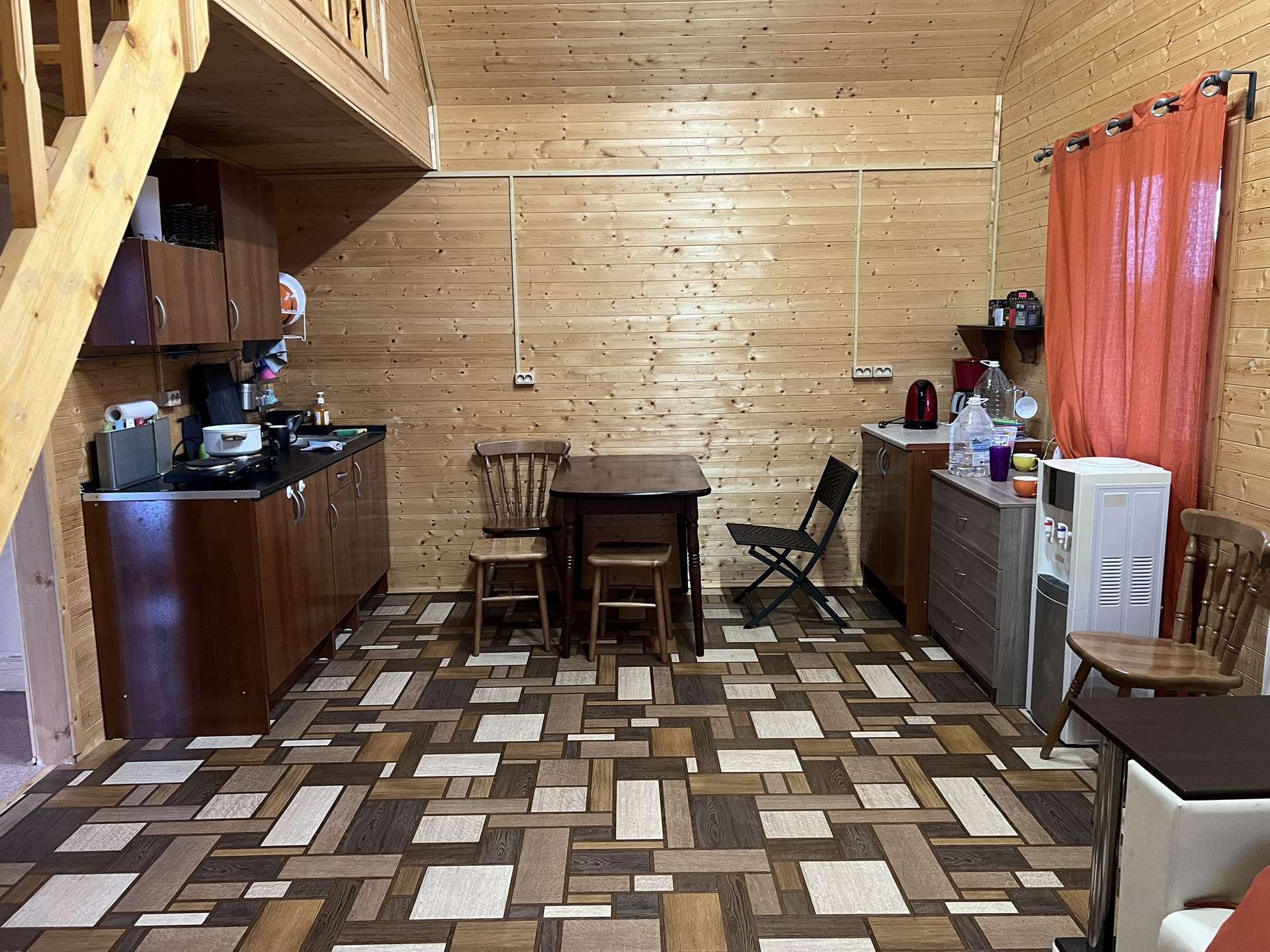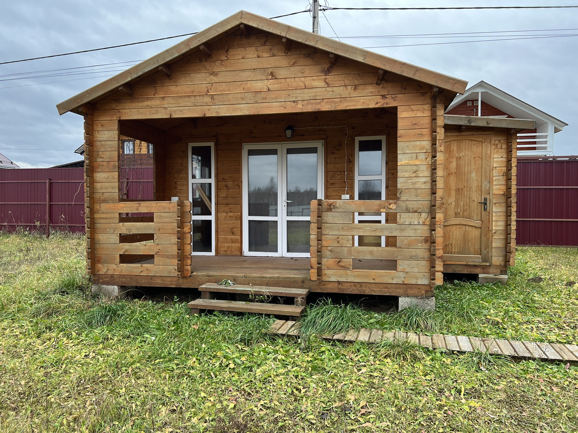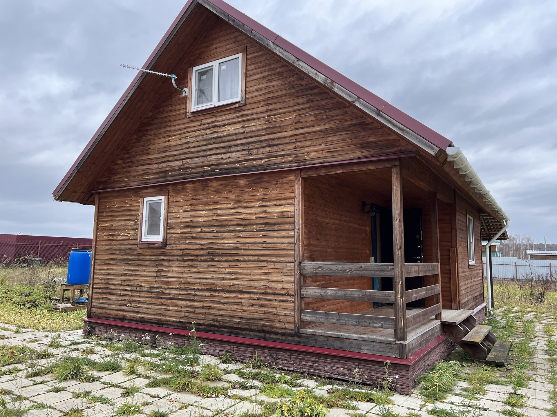 Пристроен навес, под которым зона отдыха, можно обустроить мангальную зону.