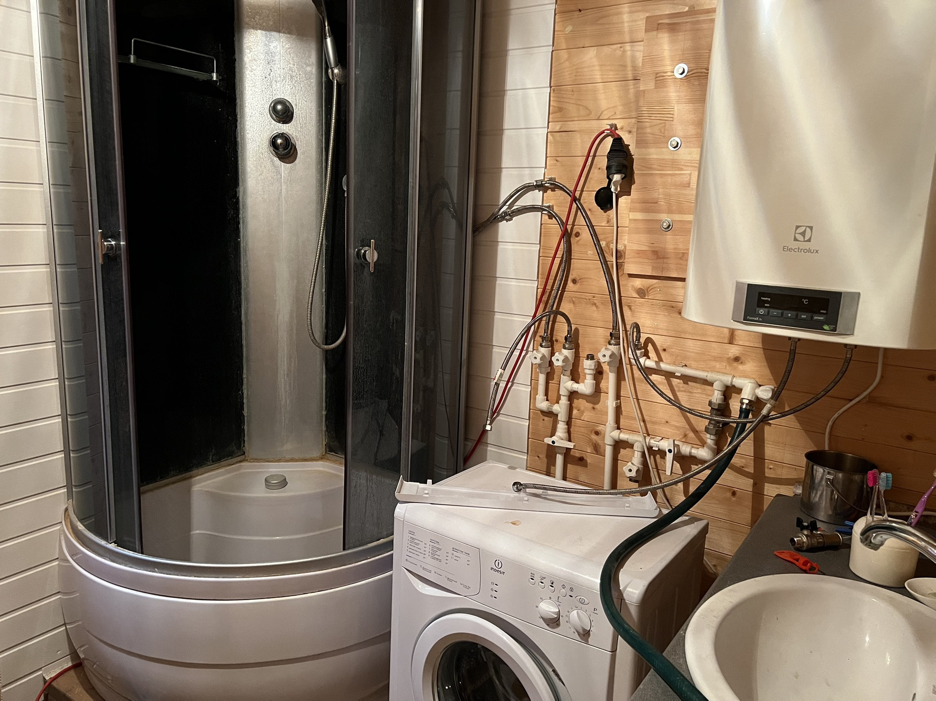 Баня - проект «Лада» (Терем-про), 70 кв м, благоустроеннная. Есть кухня, душевая, санузел, котел для нагрева воды. Мебель и тд по договоренности можем оставить. Отопление - электрические батареи. Канализация септик, водопровод скважина.