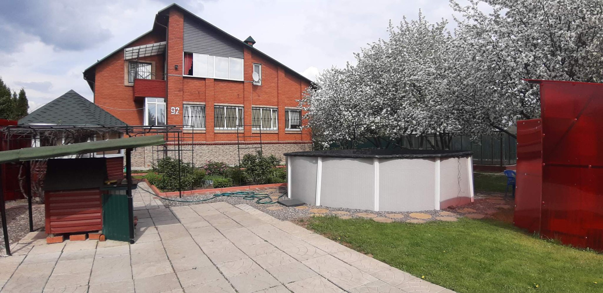 Участок 21 сотка.  Участок ухожен, облагорожен, так же площадь участка располагает к возведению дополнительных построек. Плодоносный сад, хвойные деревья, клумбы, ягодные кусты, альпийские горки, газон, тропинки из натурального камня - красивый ландшафтный дизайн. На участке беседка, летний бассейн, сарай с навесом, навес под машины.
