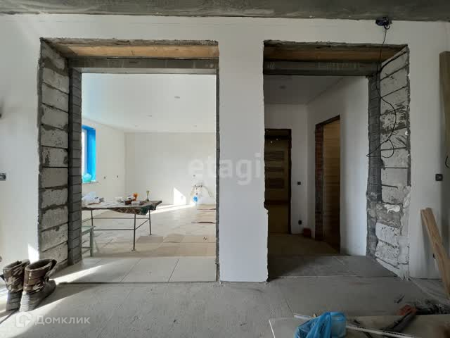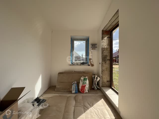 - По дому выполнена вся предчистовая отделка: установлены окна с откосами, возведены отштукатурены и отшпаклеваны все стены, проведены розетки и выключатели, залиты полы, проведены полипропиленовые трубы под дополнительное отопление, имеется теплый пол, сан. узел полностью в ремонте.