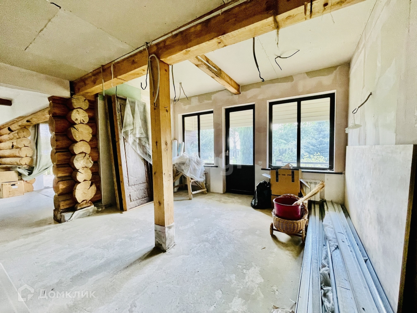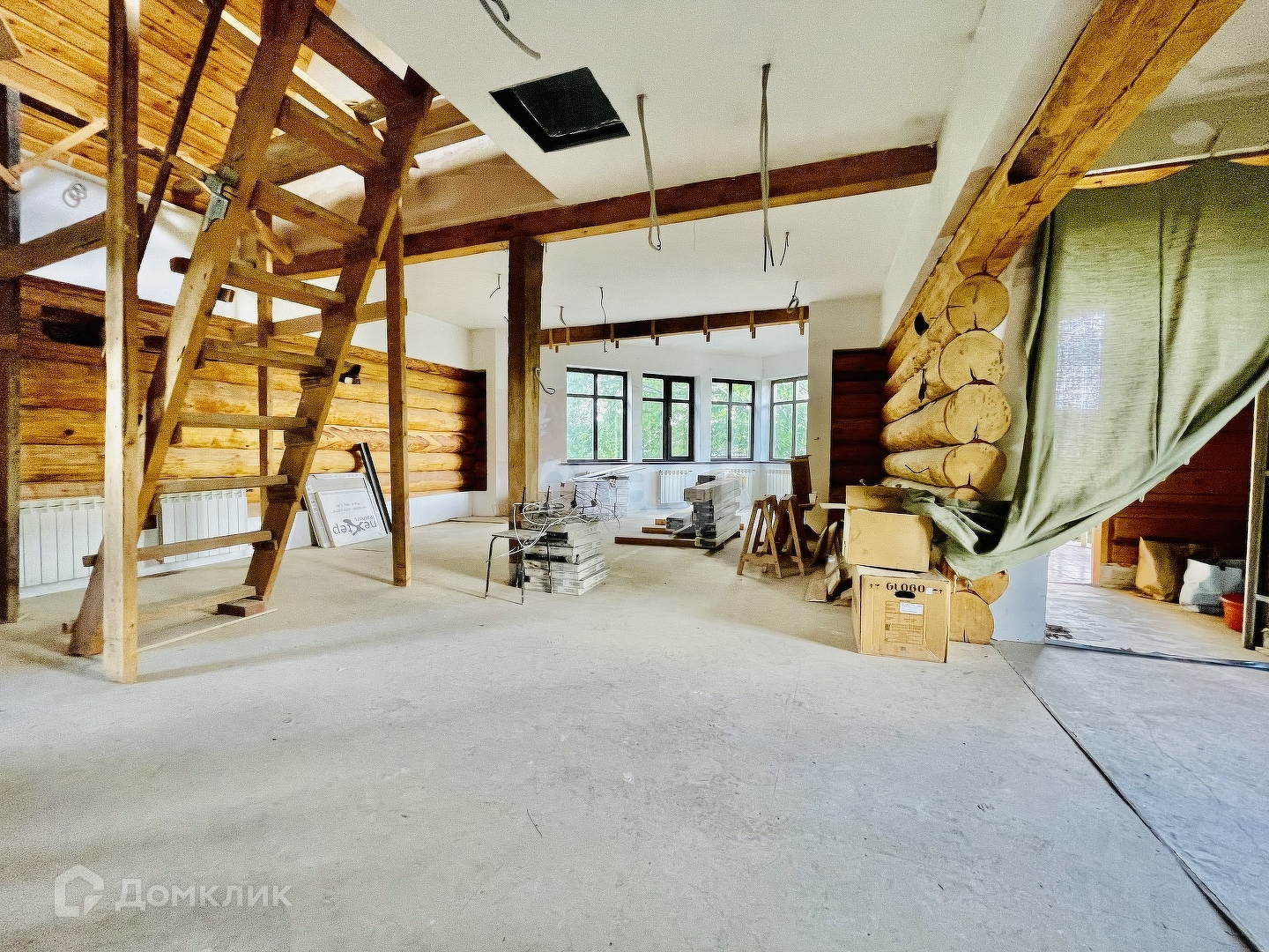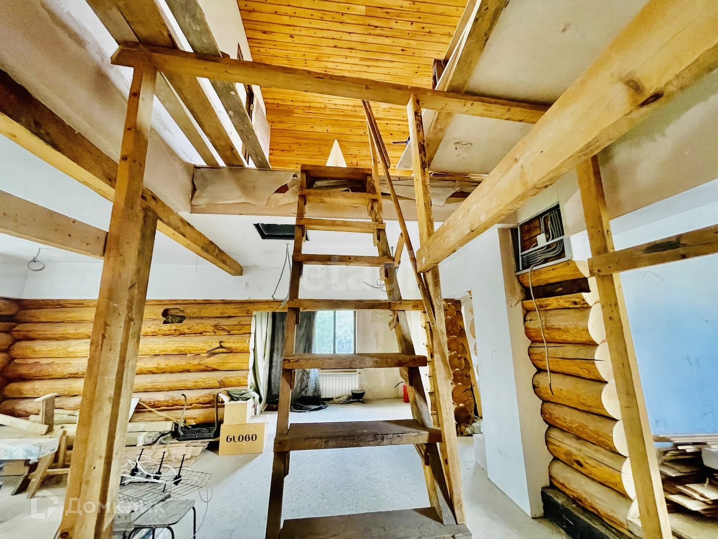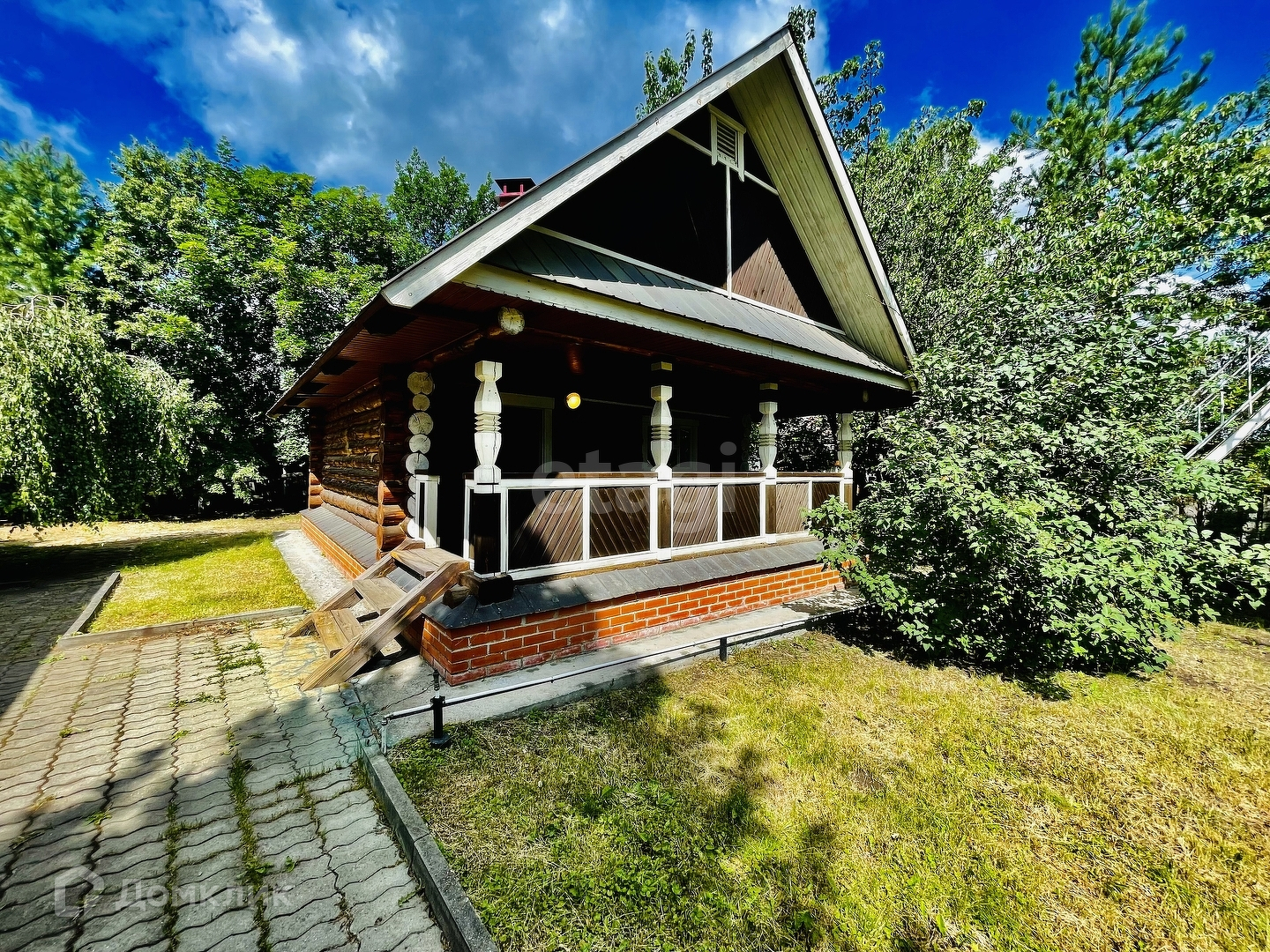 Материал стен – Шлифованное бревно(шлифовка и покрытие воском внутри) + облицовка фундамента камнем.