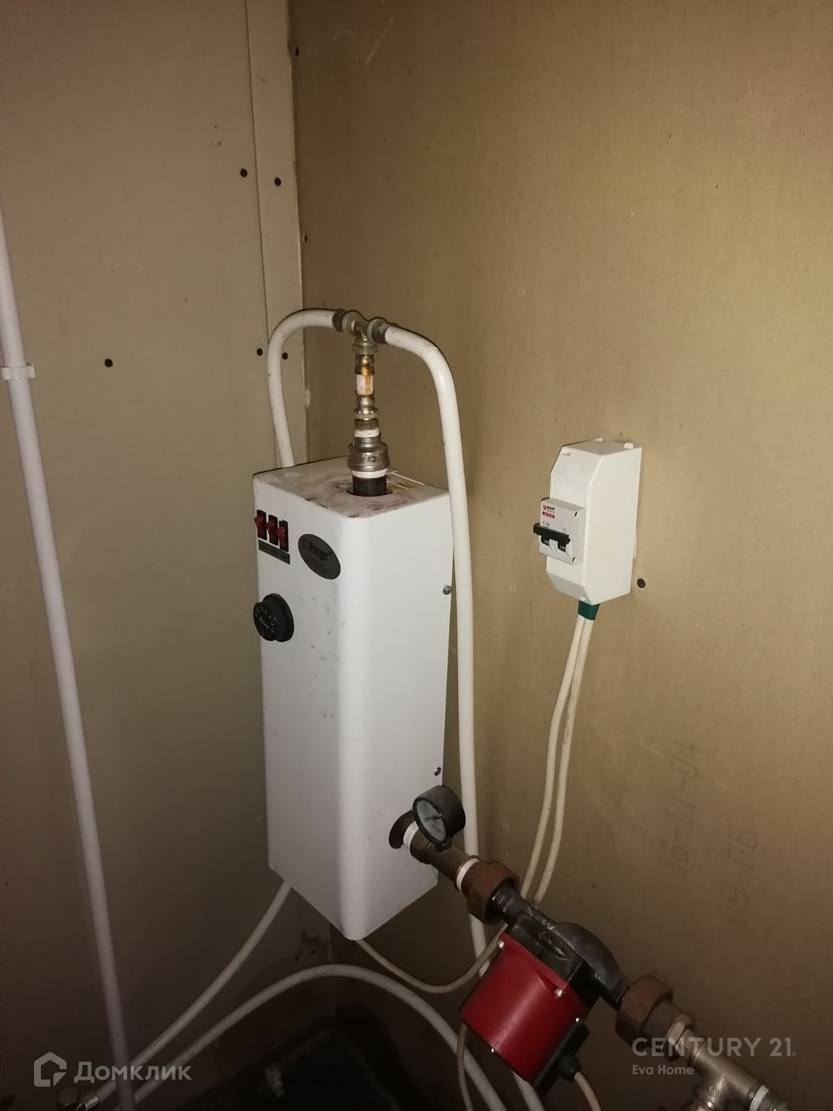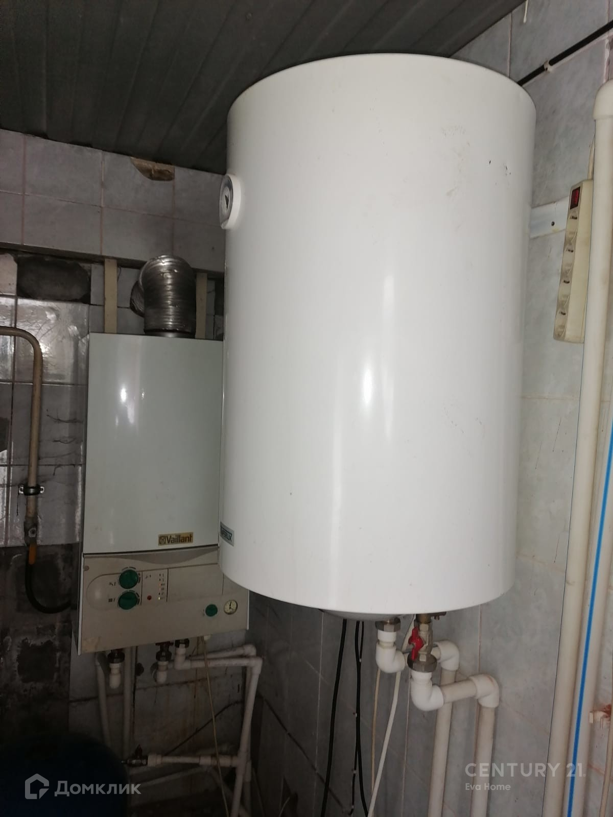 Электричество, газ, скважина, водопровод, выгребная яма, газовое отопление в доме (Германия), электрический котел в бане