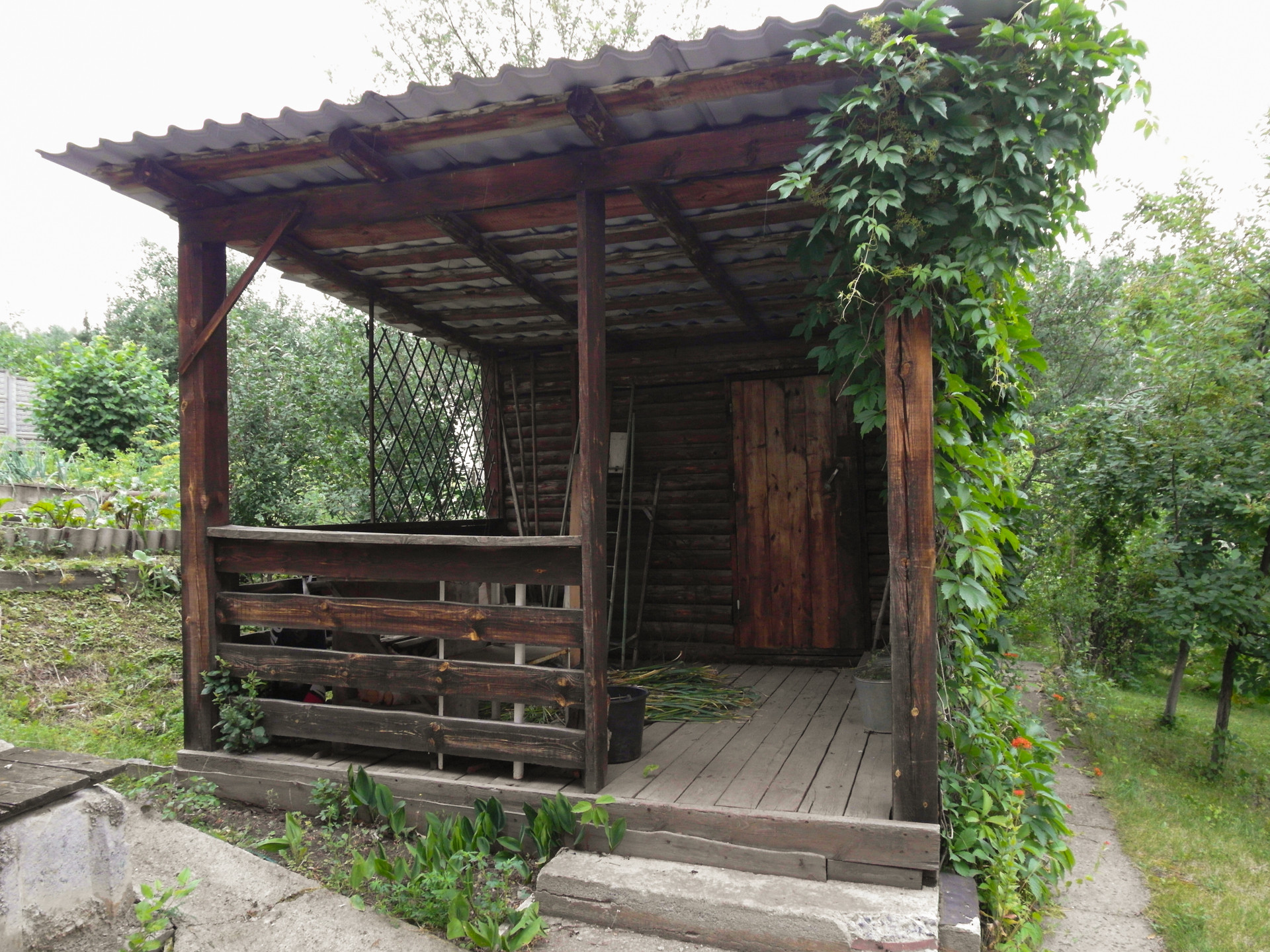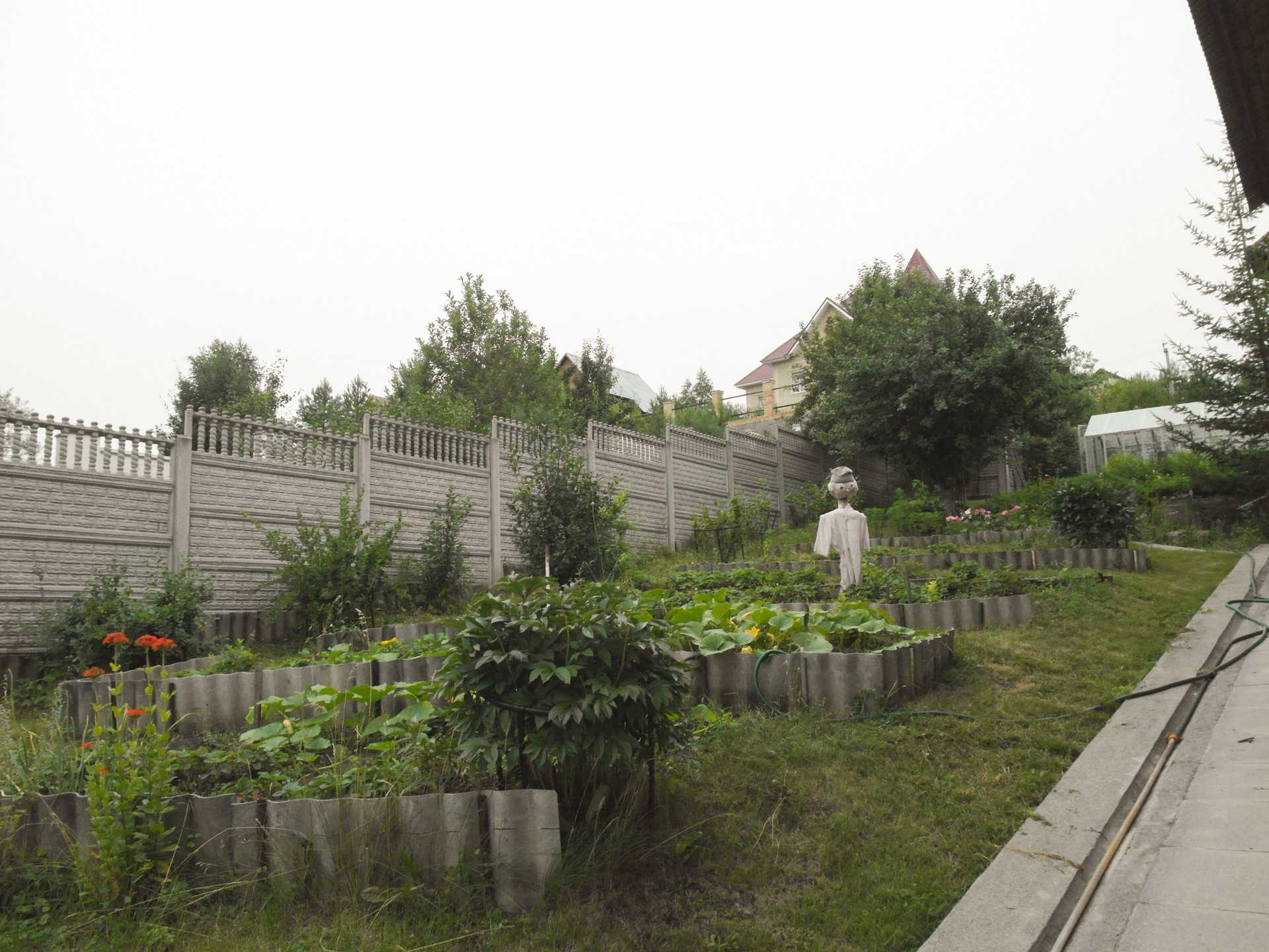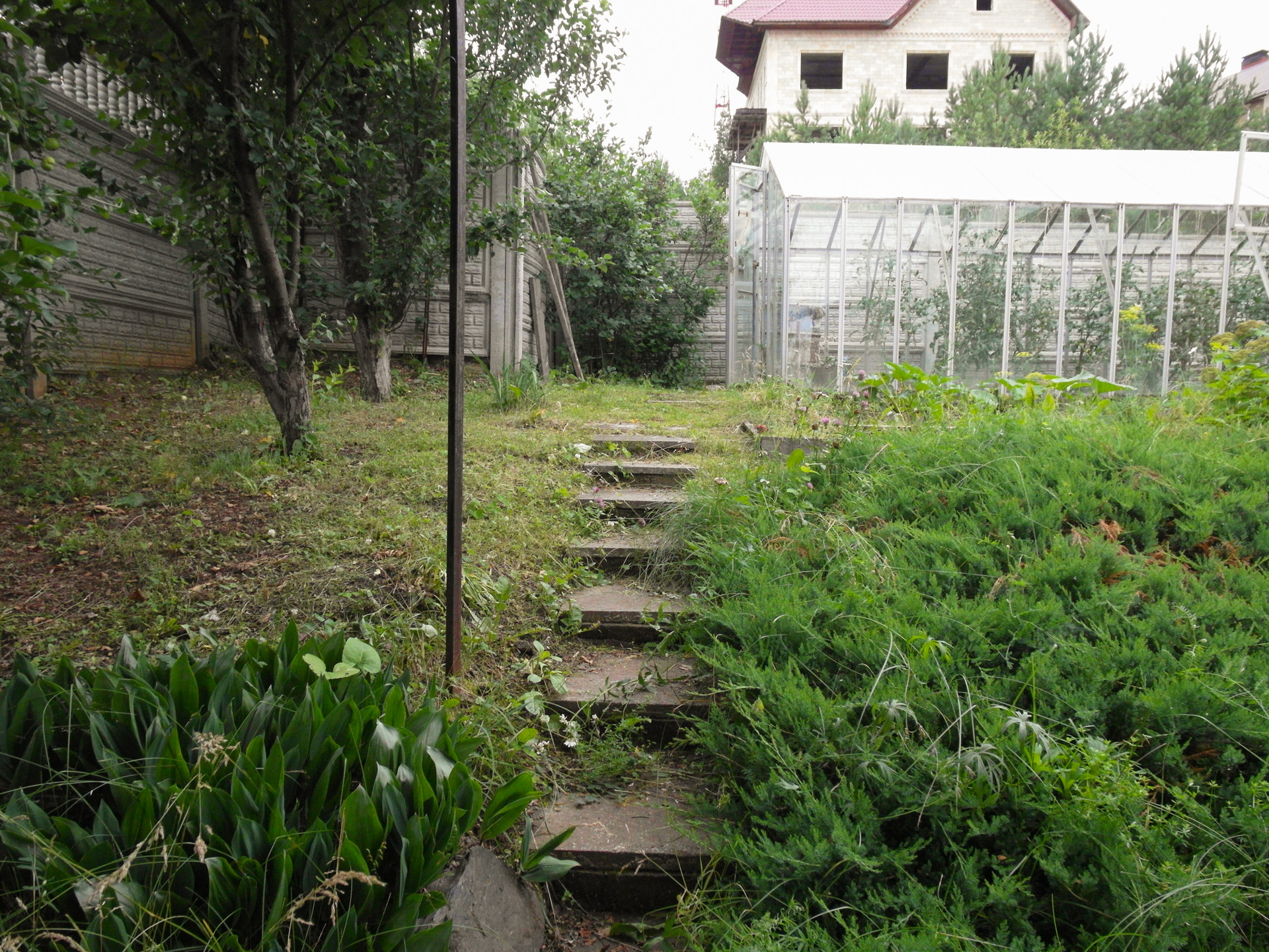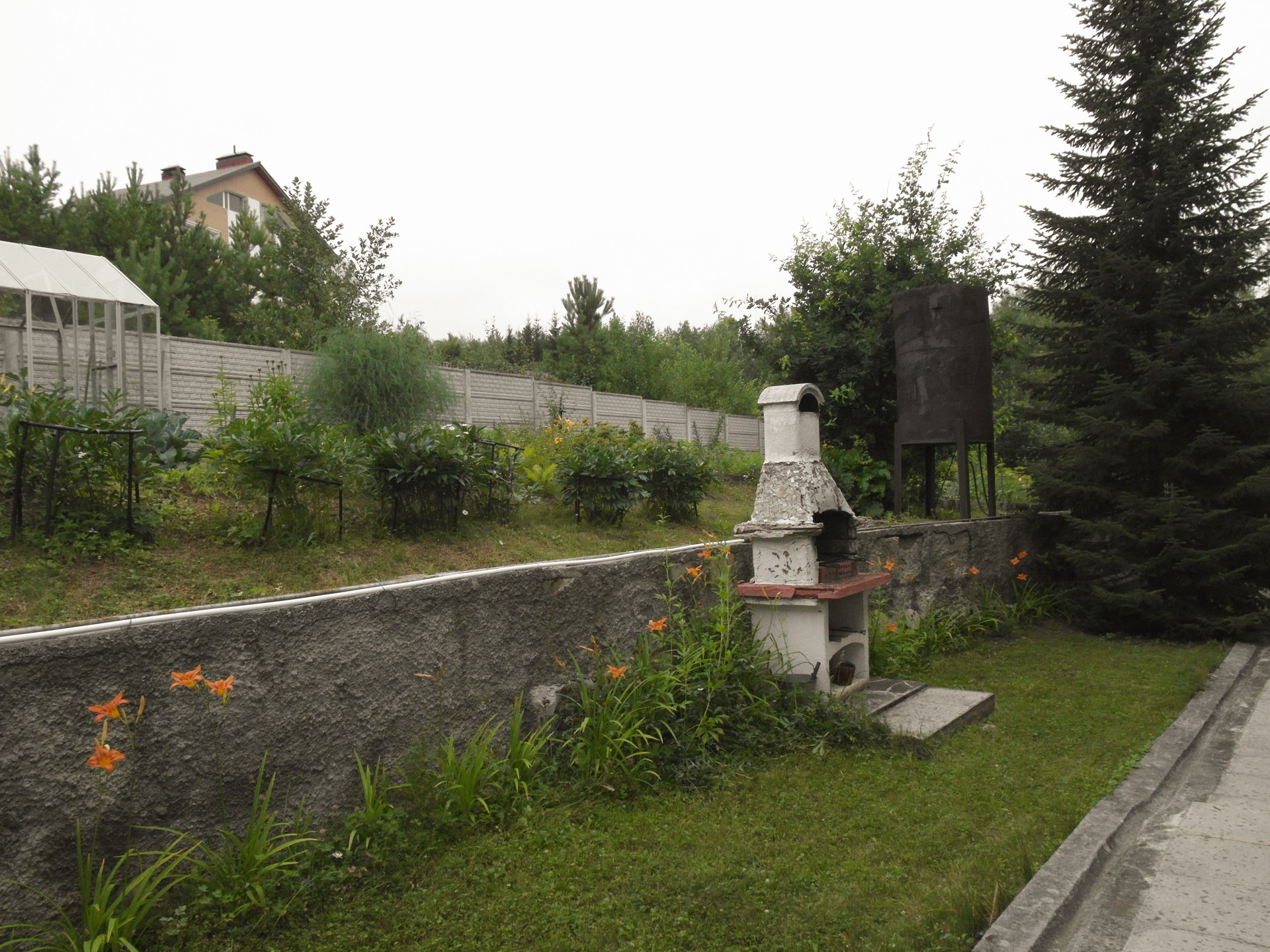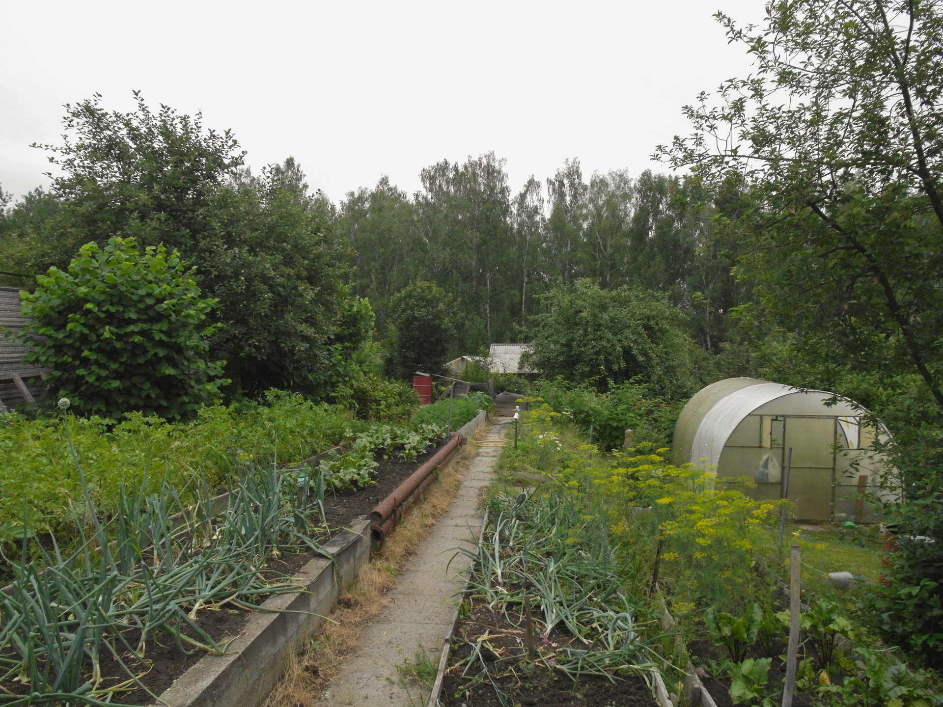 Ухоженный участок с фруктово-ягодными деревьями и кустарниками. Зона отдыха с барбекю. 2 теплицы, хозяйственная постройка для хранения садового инвентаря.