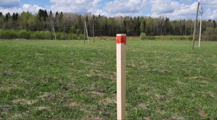 Участок вынесен в натуру, колышки по границам забиты.