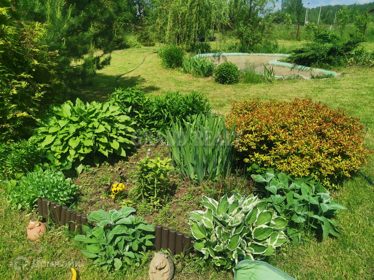 На участке есть роскошная русская баня , бассейн, теплица, дровник, хоз.постройка, беседка с зоной барбекю, большая теплица, сад с плодово- ягодными деревьями, огород , сосны и ели, туи, многолетние цветы, туалет на улице и в доме. На участке обустроен пруд для купания.