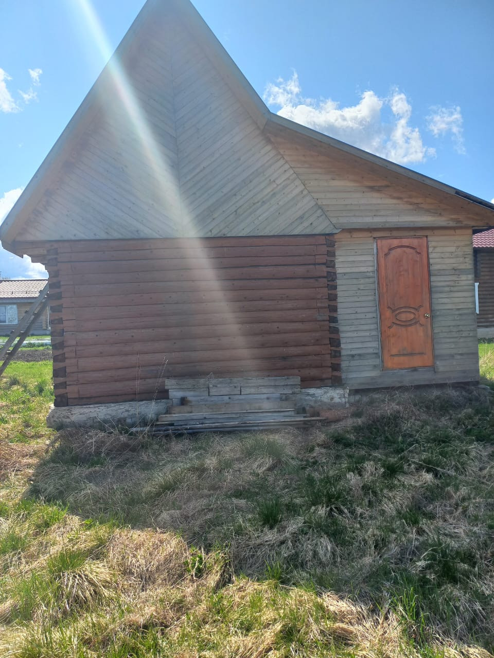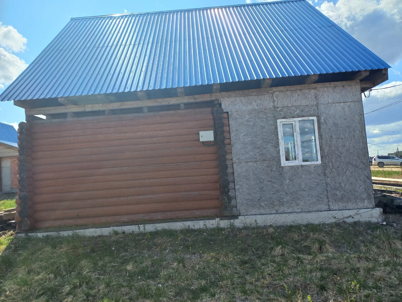 На участке имеется баня - готовая, 5,3х4, веранда обшита внутри и снаружи вагонкой.Размер веранды - 5х2,5. В бане полы, потолки сделаны, не установлены только перегородки и печь. Крыша- железо, пластиковые окна установлены, наверху предусмотрена комната отдыха. Земельный участок отмежован, к дому подведено электричество (установлен шкаф со счетчиком - 7,5 А). Предусмотрен септик и вода.