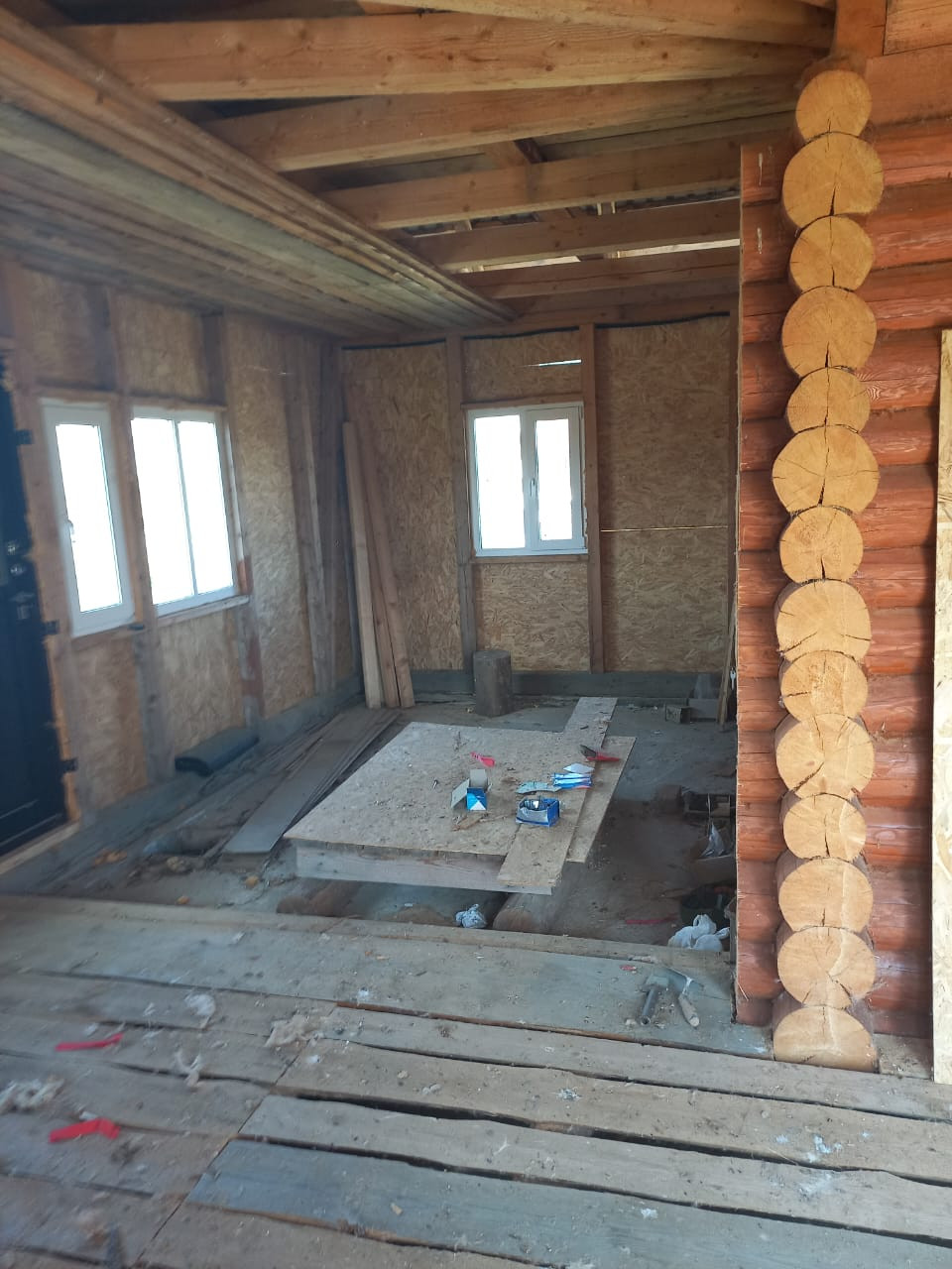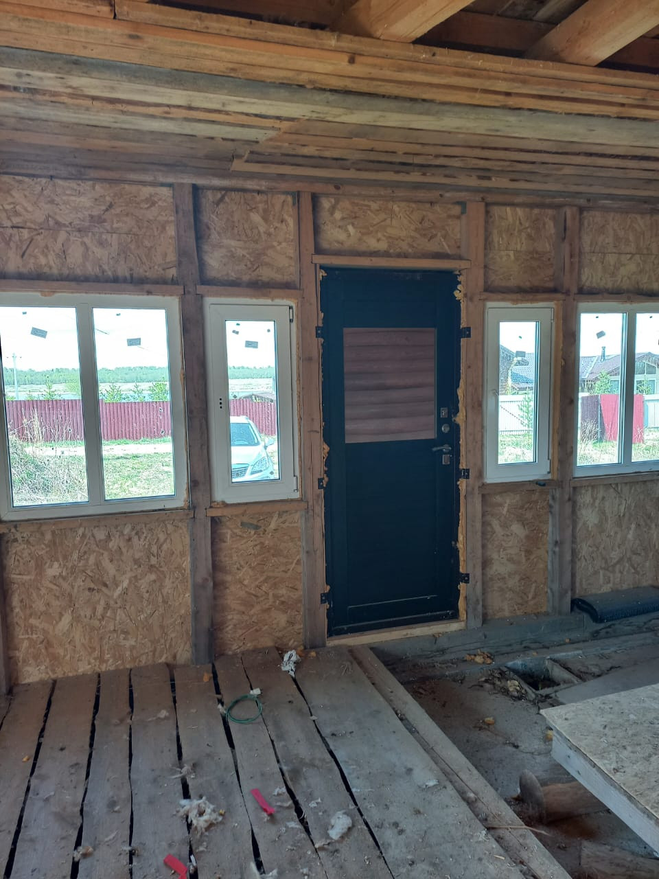 Деревня жилая, проезд круглогодичный! Участок сухой, разрешенное использование - ИЖС. Дом каркасный, на ленточном фундаменте, под металлической крышей, внутри сруб 5,3 х 5,3, калиброванное бревно. Дом обшит ОСБ-плитами. Находится в коттеджной застройке, соседи уже построились.