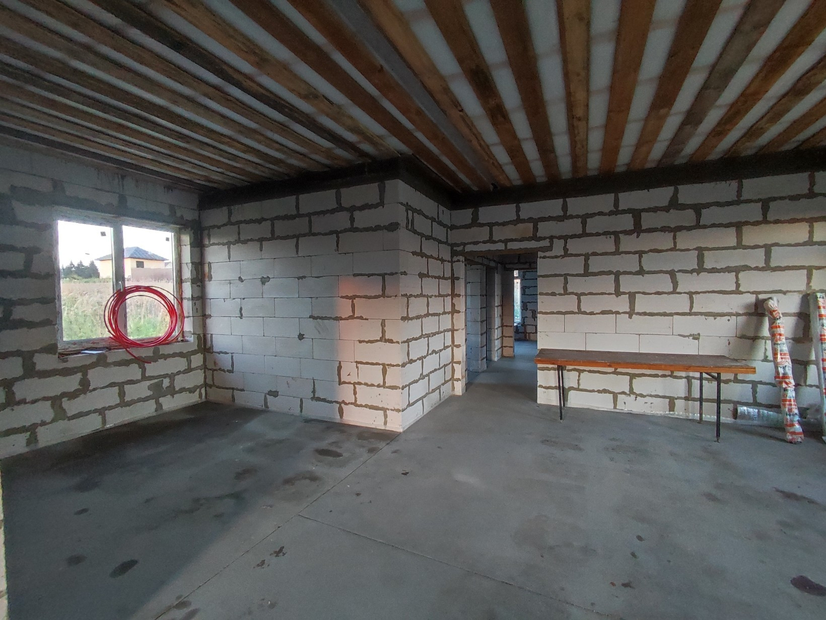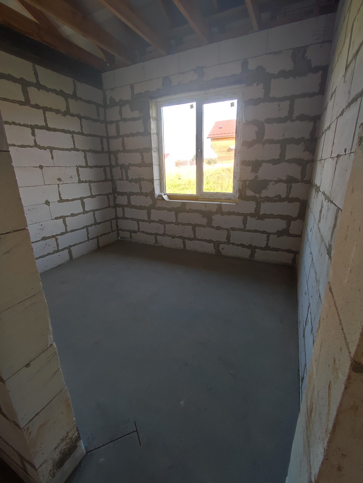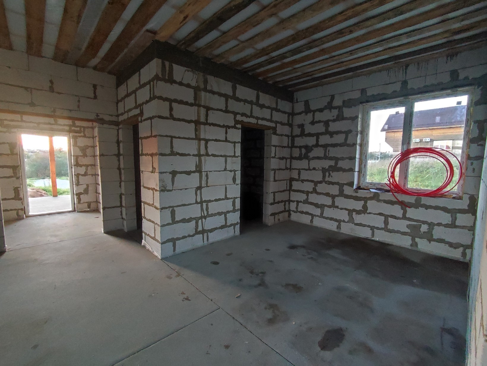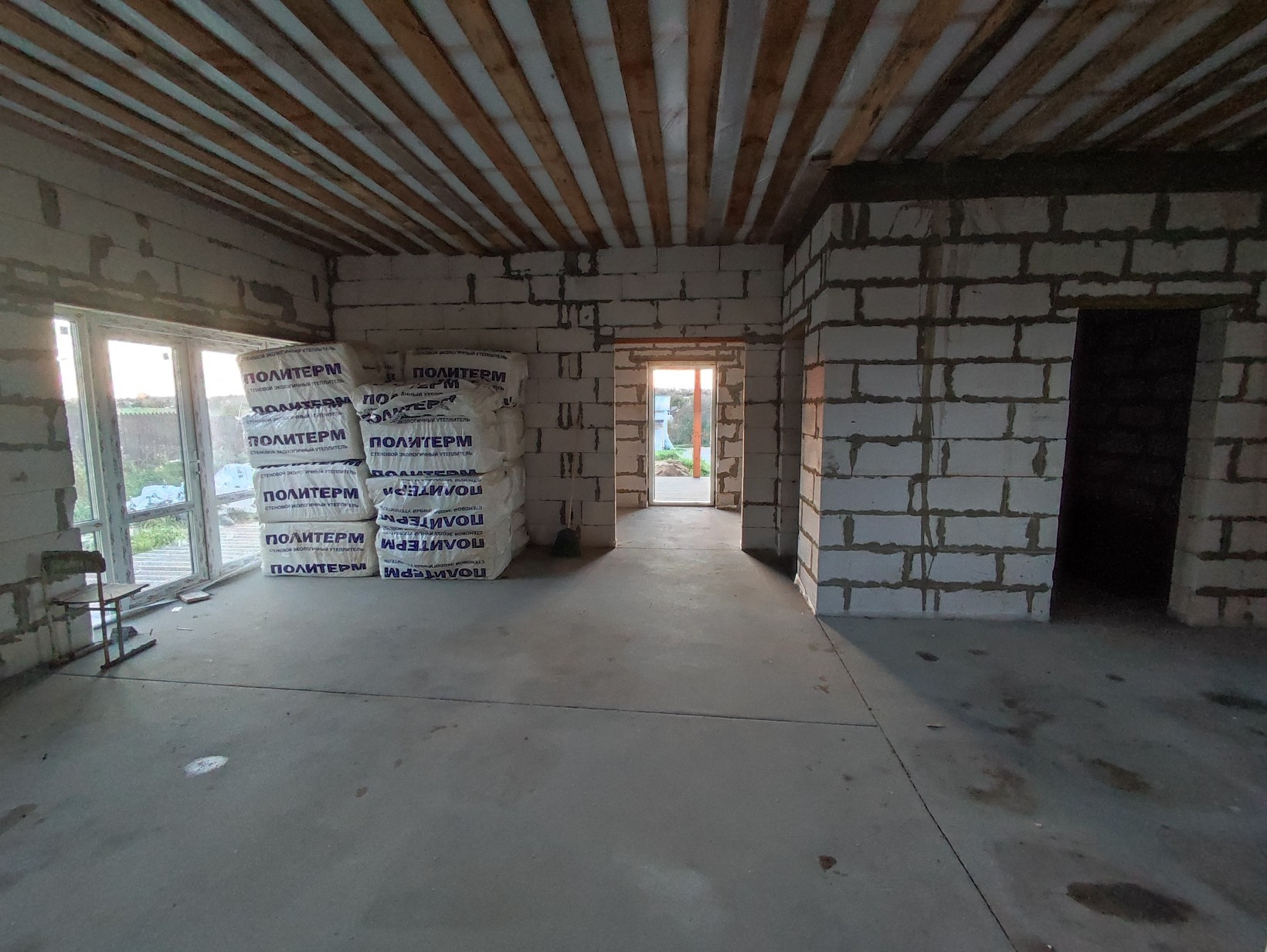 -уложен водяной теплый пол по всему дому, сделана полусухая стяжка 70мм.