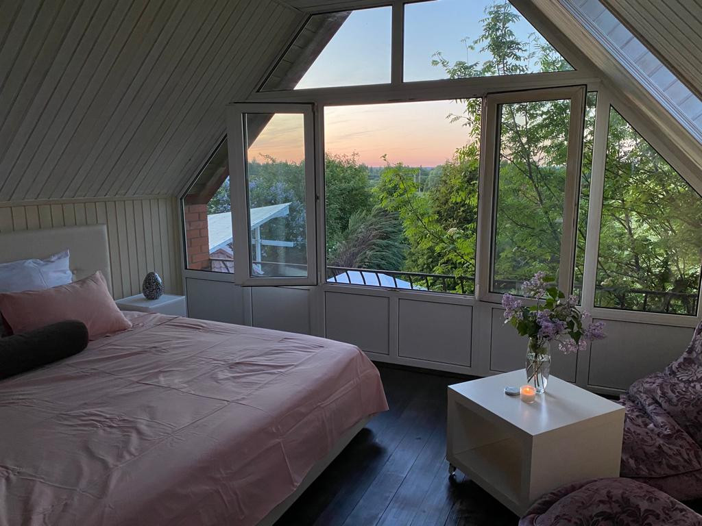 Второй этаж: Спальня-гостиная, вторая спальня с видом на сад.
