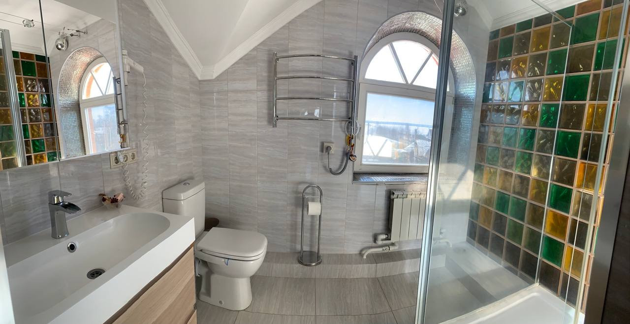 Отдельное строение - двухэтажная баня -гостевой дом 100квм: Русская баня на дровах, электрическая сауна, итальянская Джакуззи, бассейн 3х5, душевая кабина, туалет.