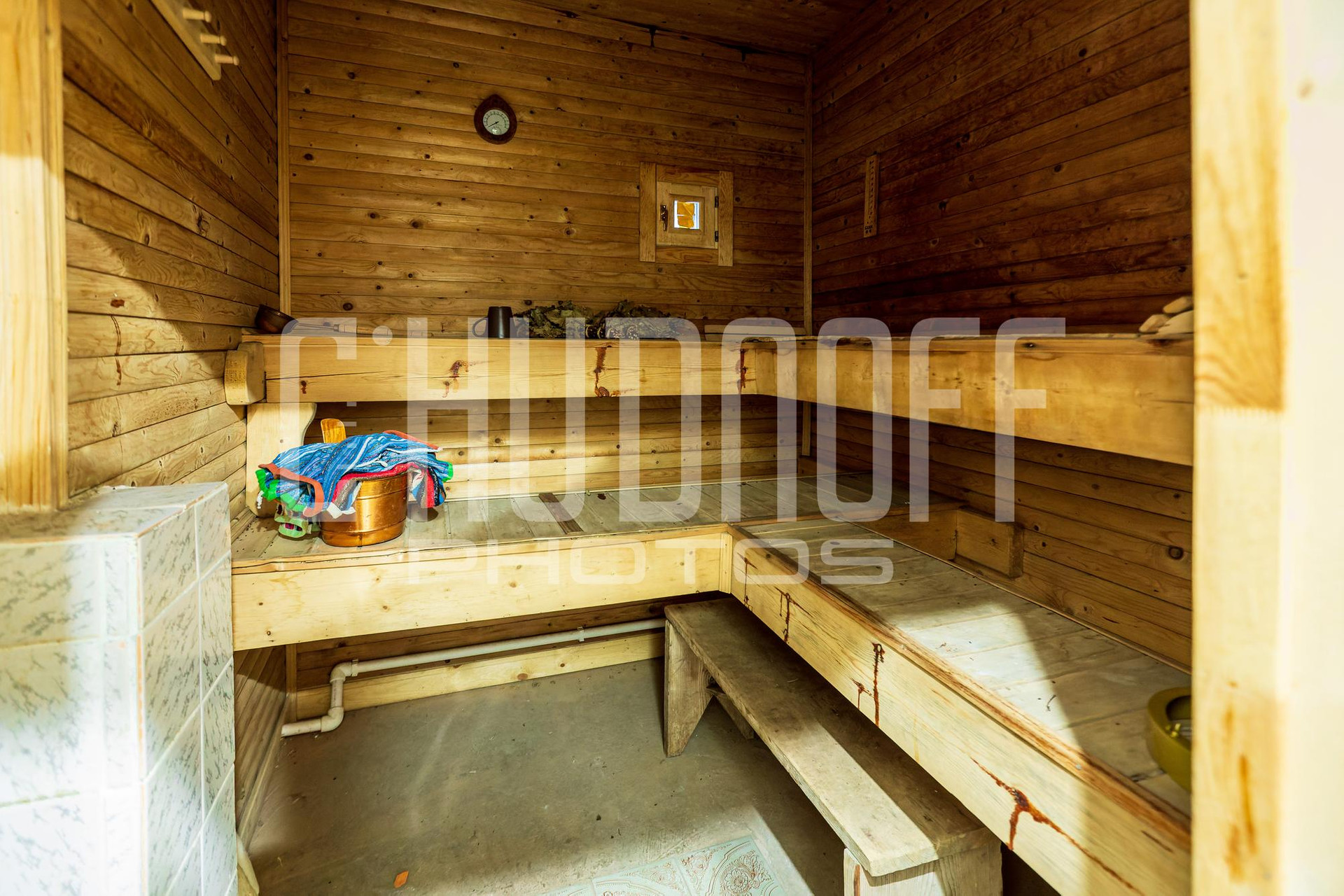 Баня: 2 этажа, мансардный этаж, подвал. Полностью с отделкой, пригодна для проживания.
