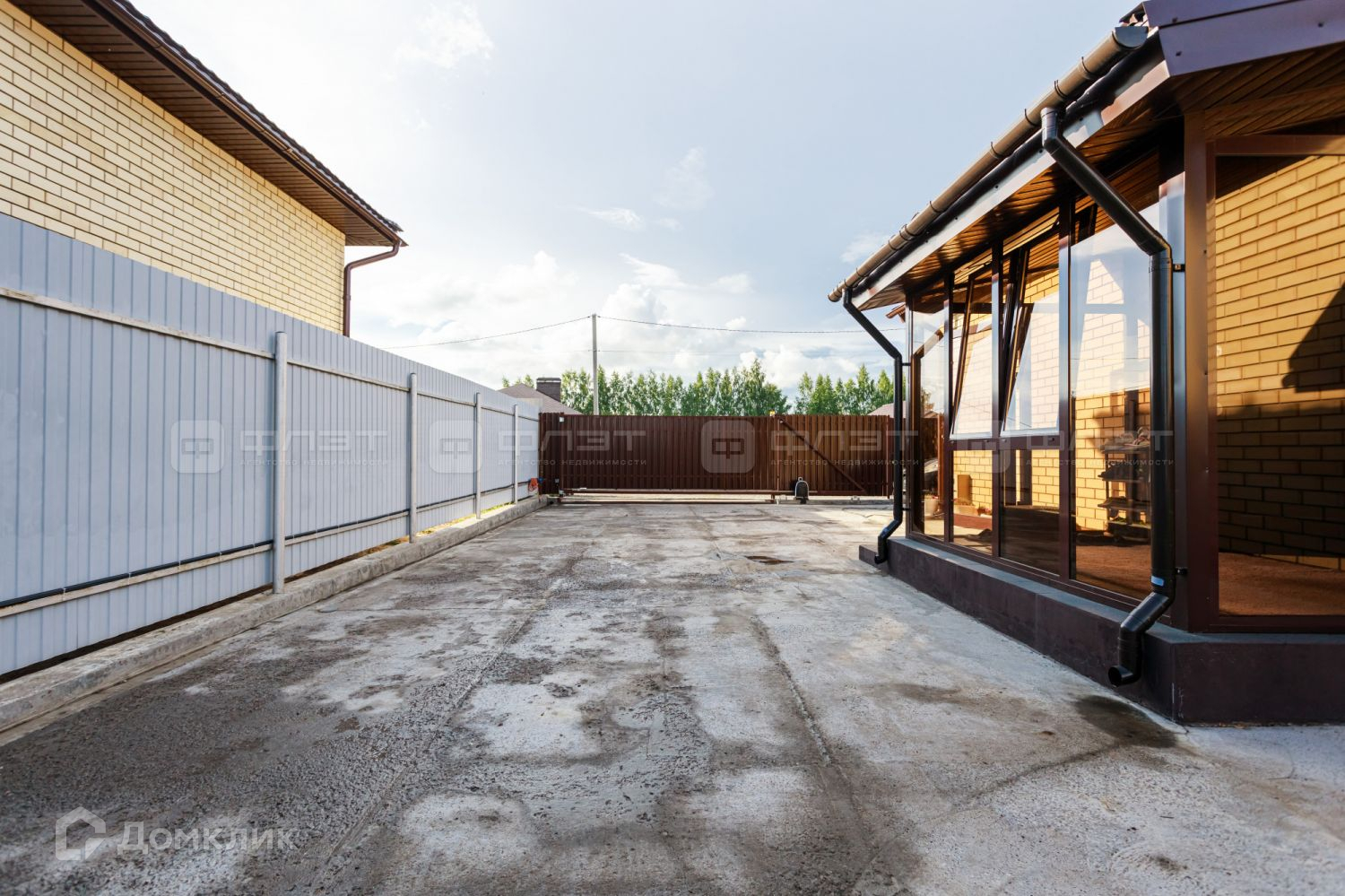 По периметру дома имеется отмостка, так же залит бетон под брусчатку с водоотводами