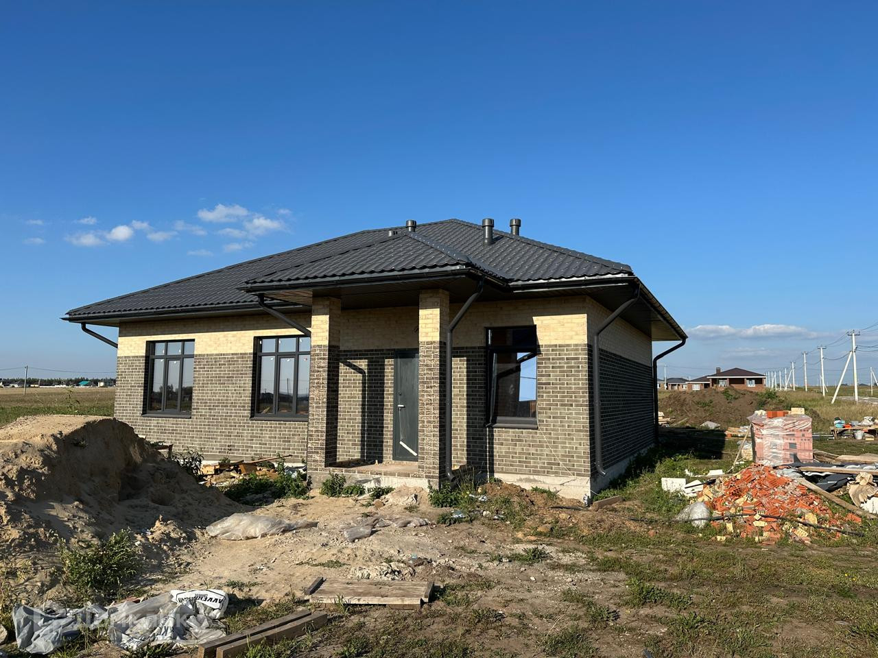 В домe имeетcя просторная кухня-гостиная  с выходом на террасу,3 cпaльныx комнaты, отдельная гардеробная.