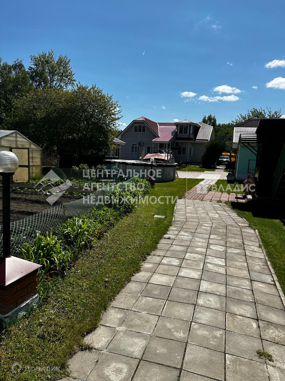 На земельный участок завезён плодородный грунт, разбиты клумбы, газон, посажены цветники, плодоносящие кустарники и плодовые деревья (вишни, яблони). Все дорожки выложены тротуарной плиткой.