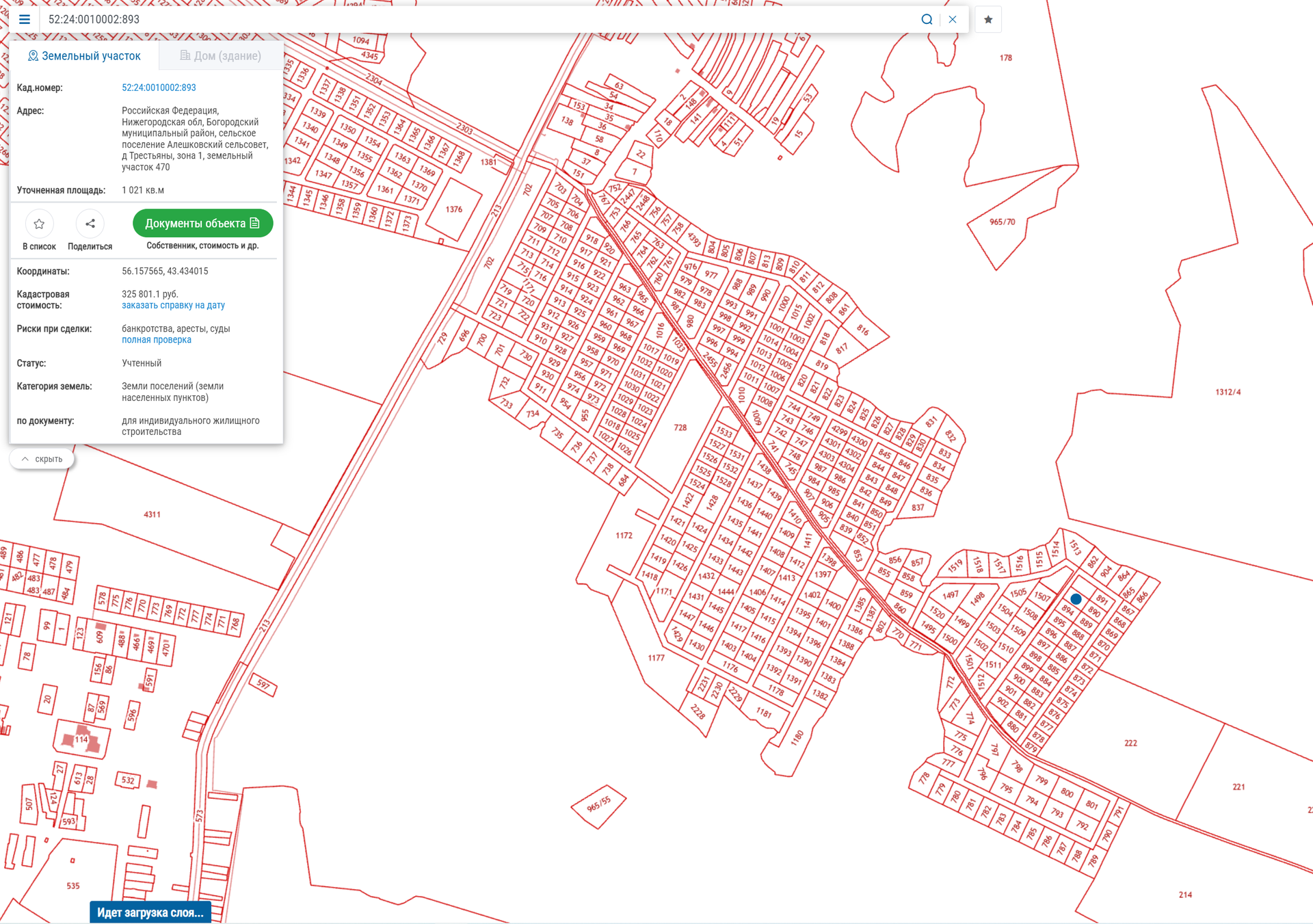 Кадастровый номер: 52:24:0010002:893, площадь более 10 соток = 1021 кв.м.